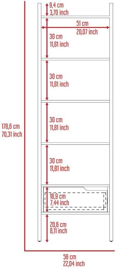 From the moment we set eyes on this ladder-style bookcase, its elegant silhouette stood out. The dark walnut finish beautifully highlights the natural wood grain, creating a warm, inviting aesthetic that blends seamlessly into a variety of interiors. The four sturdy legs provide a solid foundation, ensuring stability without the bulkiness of heavier furniture. One of the design’s standout features is the integration of a single drawer nestled below the open shelves, offering a discreet storage option that maintains the minimalist charm.Each of the five open shelves is thoughtfully spaced, allowing us to showcase books, decorative items, or plants with ease, while enhancing the overall airiness of the piece.