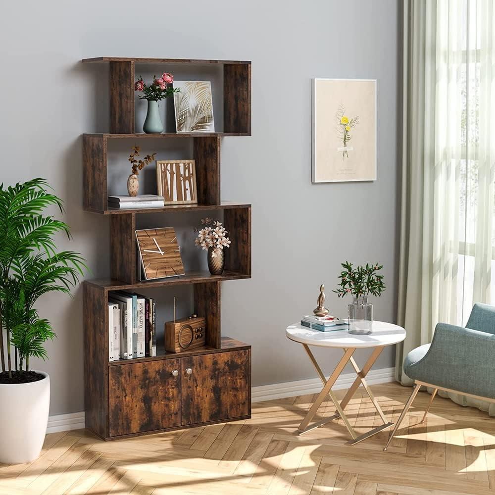 We recently had the chance to incorporate the 5-Tier Bookshelf with Doors Wooden Geometric Bookcase into our living space, and it quickly became a standout piece. Its unique S-shaped design and rustic brown finish bring a charming vintage vibe, while the combination of open shelves and closed cabinets offers versatile storage options. Whether stashing books, displaying plants, or organizing personal collections, this bookshelf provides a functional yet artistic solution. In this review, we’ll share our honest impressions after living with this distinctive, sturdy piece crafted from selected particleboard, exploring how it fits into various rooms and decor styles.
