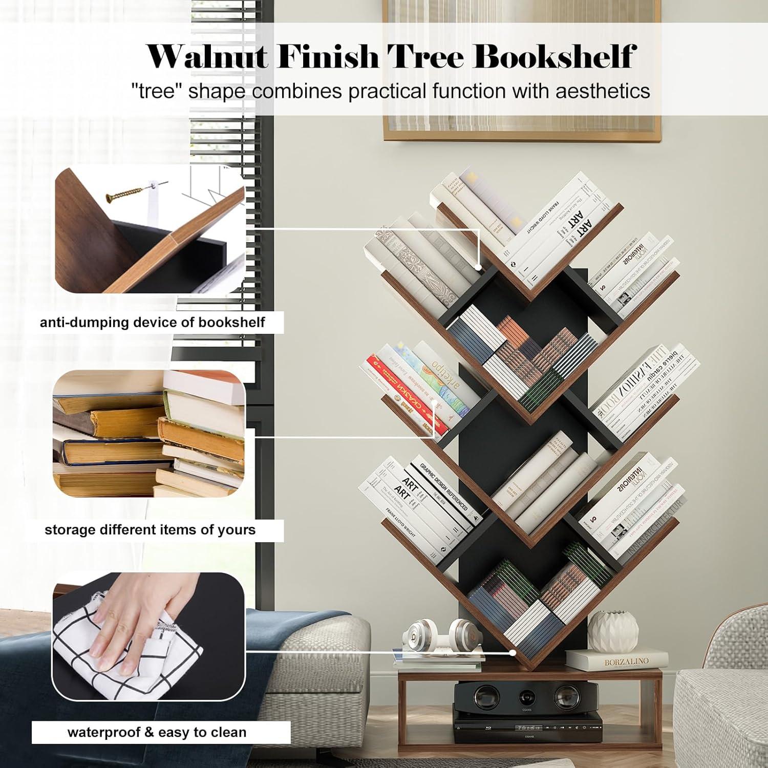After spending considerable time with this beautifully crafted 5-shelf floor-standing unit, we appreciate its elegant walnut and black finish that adds a modern yet warm touch to any room. The design cleverly mimics a tree, making it a standout piece that holds not just books but also magazines and décor items in an artful way. Assembly was straightforward following the provided instructions, and once put together, the structure felt stable and sturdy-though we recommend avoiding any liquid exposure and overloading the shelves to maintain longevity. Its free-standing design makes it versatile enough to fit seamlessly in various spaces including living rooms, home offices, and bedrooms.