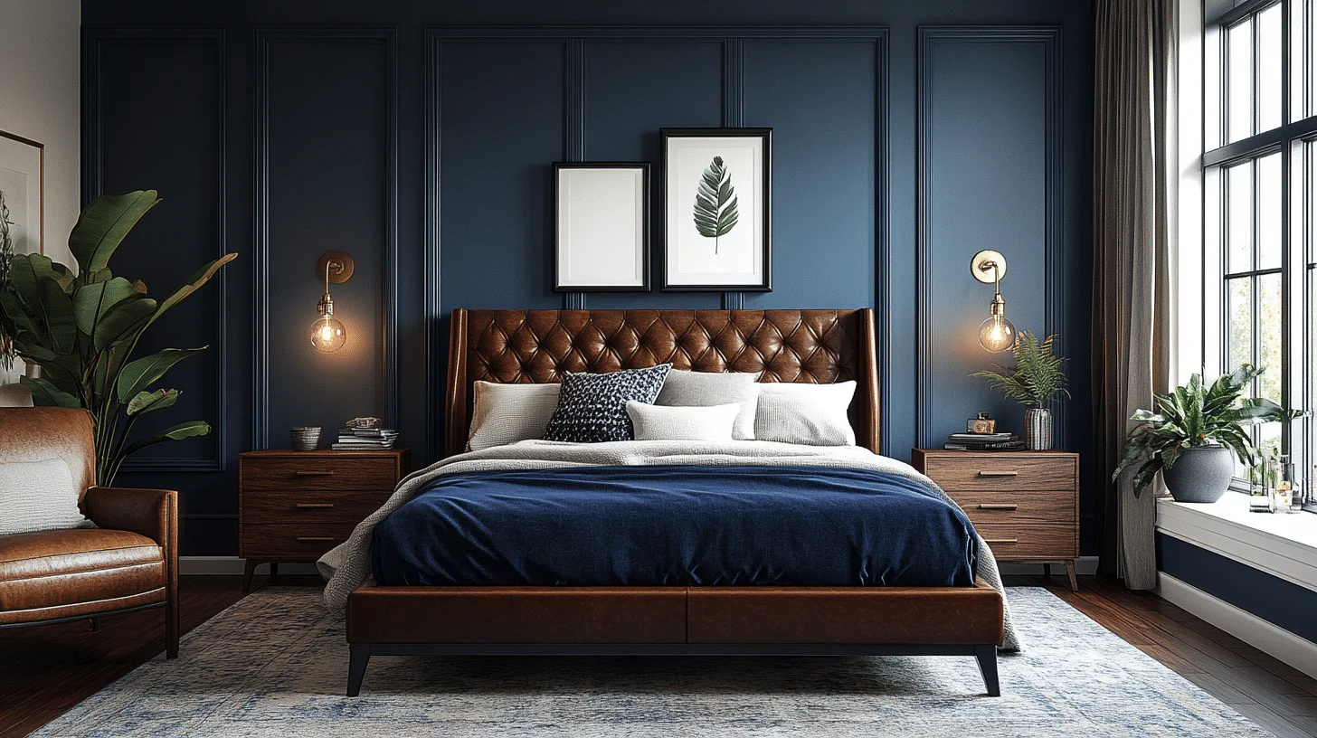 Deep hues like slate gray, navy, and black paired with leather and dark wood accents create a strong but inviting atmosphere. Ambient lighting and clean-lined furniture keep the look polished and sophisticated, ideal for those seeking a masculine yet comfortable retreat.