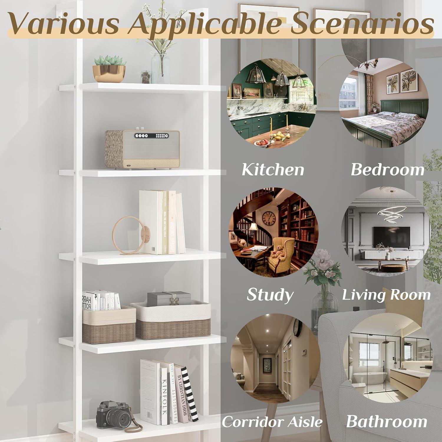 The open design shelves offer a generous 5-tier structure that truly maximizes storage possibilities without overwhelming the room. its ladder frame, crafted from sturdy white metal paired with white MDF shelving, provides a solid foundation capable of holding everything from books and decorative plants to media equipment, making it a versatile addition to any space. The industrial-chic aesthetic blends effortlessly into living rooms, bedrooms, or home offices, creating a clean and elegant look. We also appreciate how the shelves’ open format allows for easy access and quick visual inventory,which is especially useful in busy environments where functionality meets style.