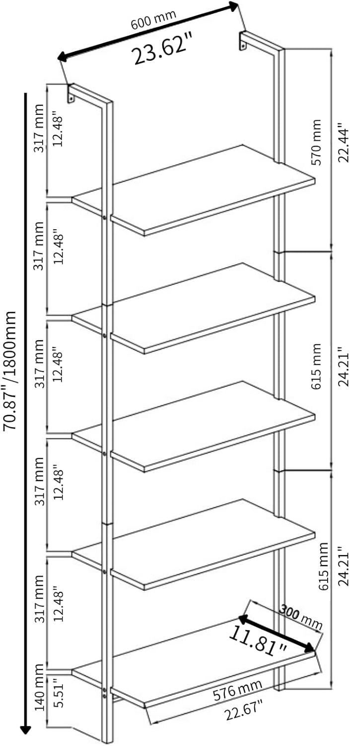 the 5-tier design strikes a perfect balance between vertical storage and floor space savings, making it an ideal choice for compact rooms or offices where every inch counts. Measuring just under 24 inches wide and about 12 inches deep, it fits snugly against a wall without feeling bulky or overpowering the room. The open ladder-style shelves create an airy, spacious look, preventing any sense of clutter while still offering ample surface area for books, plants, or decorative pieces.