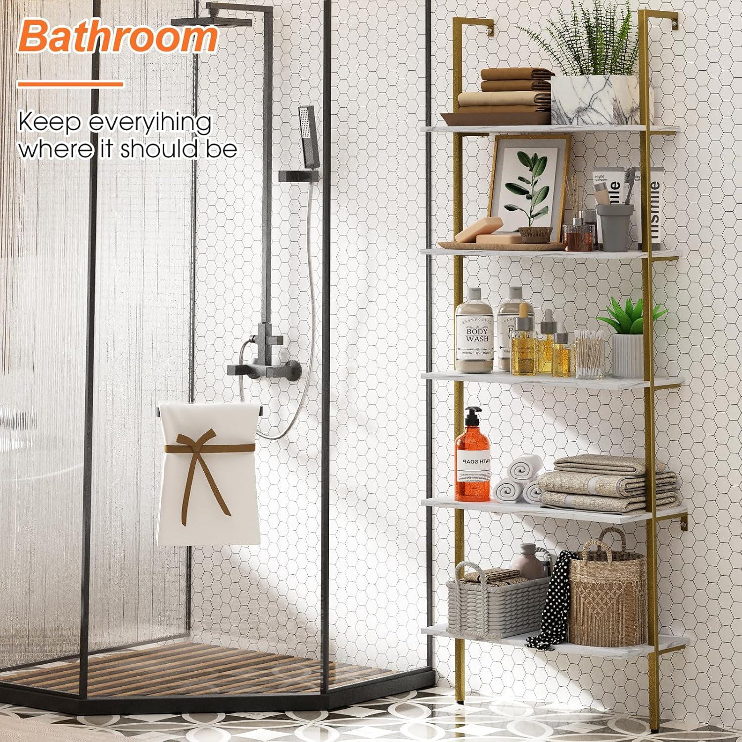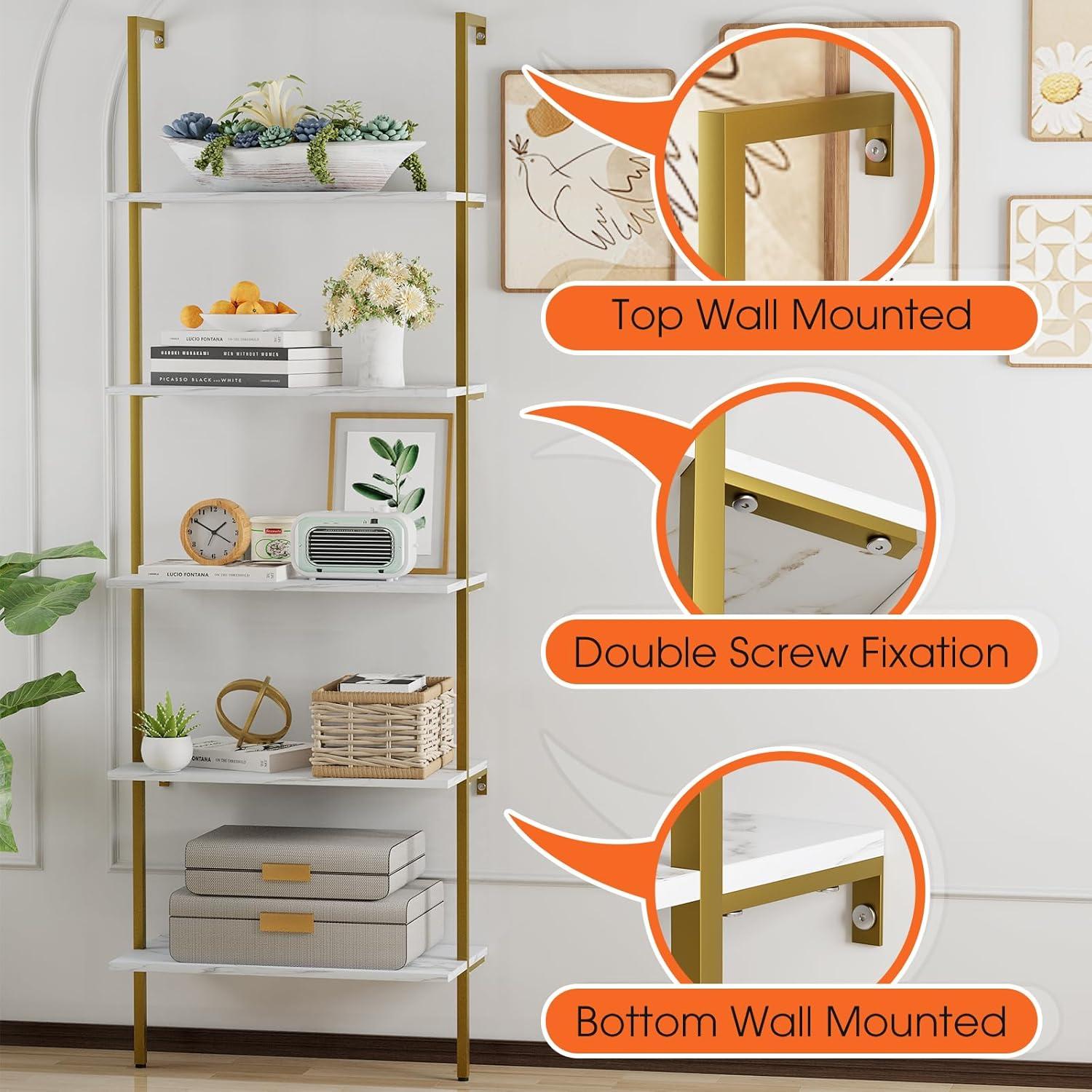 After spending considerable time evaluating this ladder-style bookshelf, we appreciate how its wall-mounted design adds both safety and stability, making it ideal for homes with children or pets. The strong metal frame paired with the white marble finish offers a chic, modern aesthetic that complements various interior styles without overwhelming the space. Its minimalist look combined with the practical five tiers provides ample storage for books,décor,or collectibles,especially useful for smaller rooms where maximizing vertical space is a priority.