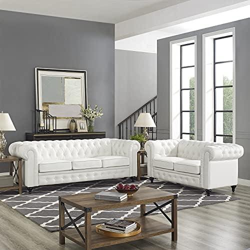 Designed to bring a touch of elegance and comfort to any living space, this modern furniture set features high-quality faux leather upholstery paired with high resiliency foam for maximum comfort. The no-sag base along with tufted arm and back support ensures a cozy experience for everyone. The solid wood frame enhances durability, while the Victorian-style design adds a classic flair that can effectively serve as a conversation starter in your home. Additionally, it is available in various configurations, allowing you to choose a full set, loveseat, accent chair, or combinations according to your needs.