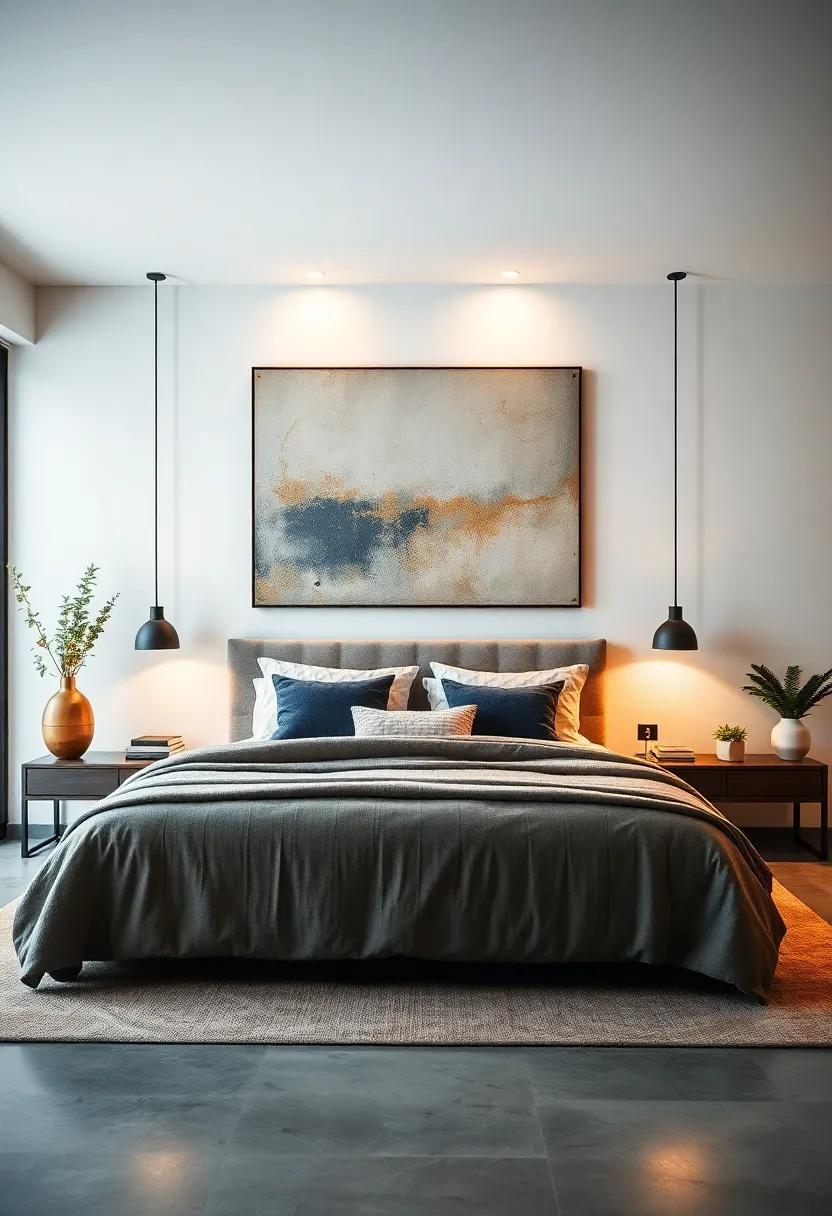 - Earth-toned accents in bedding and accessories to harmonize with metal hues