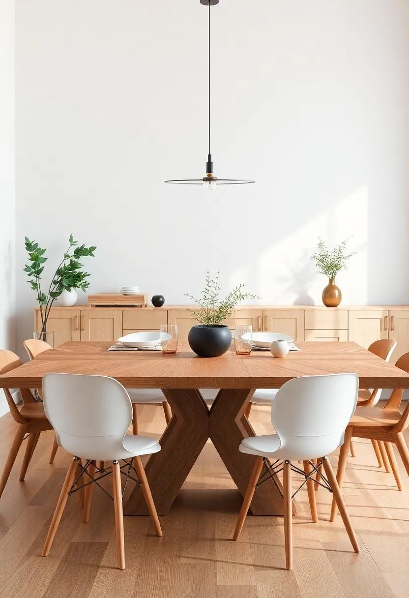 Transform your dining space into a serene sanctuary by seamlessly integrating natural elements that echo the beauty of the outdoors. Incorporate greenery with potted plants, like trailing ivy or succulent arrangements, that not only add vibrant color but also improve air quality. Emphasize textures by layering organic materials such as linen table runners, wicker placemats, or even a driftwood centerpiece to provide a tactile experience for your guests. Don’t forget to utilize natural lighting; placing your table near windows allows the sunlight to create a warm atmosphere that complements your wooden dining table.