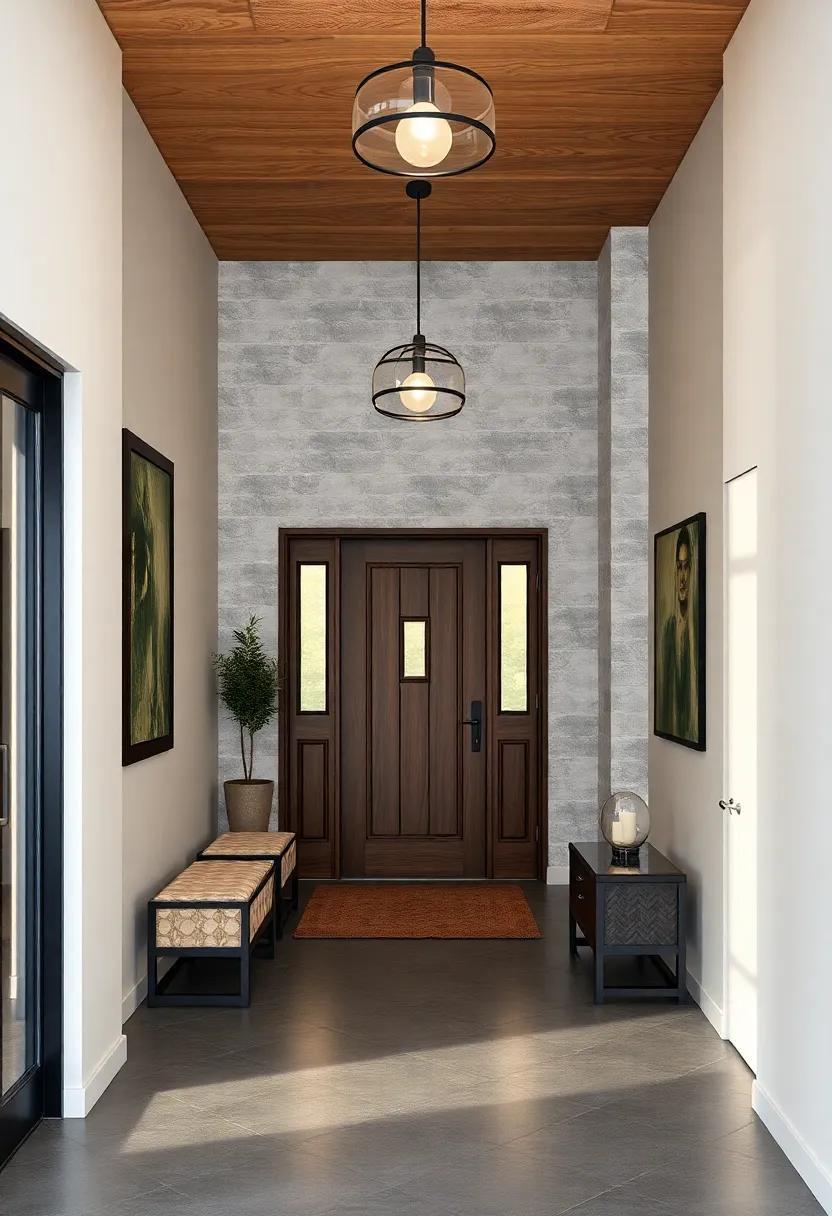 Pair these soft elements with industrial fixtures to maintain a cohesive design. Think of large metal light fixtures casting a warm glow over a wooden console table, adorned with striking decorative items. This careful juxtaposition creates depth and interest, making the entryway not just a passage but a statement.You might want to experiment with: