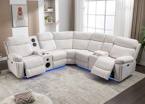 L-Shaped Reclining Sofa Featuring LED Lighting and Bluetooth Speakers