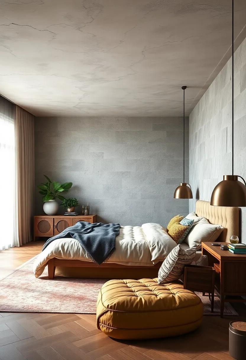 To perfect this look, consider layering materials and finishes that contrast yet complement one another. For example, pair the cold hardness of a corrugated steel wall with warm tones from natural fabrics, or juxtapose a rugged concrete bedside table against a velvet headboard. The key lies in carefully curated details that highlight texture and warmth simultaneously, creating a bedroom that’s as visually compelling as it is agreeable.