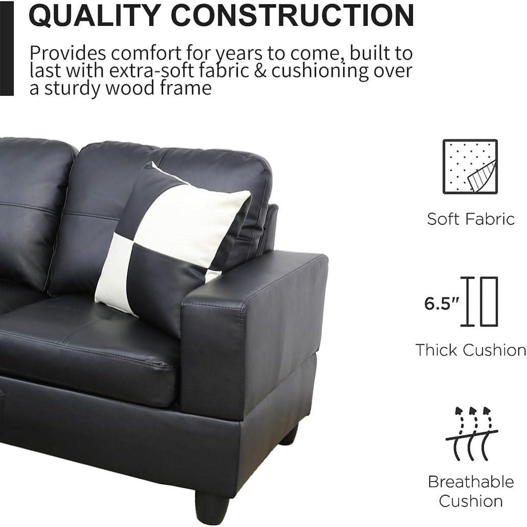 You watch the L Shaped Couch,Faux Leather Sectional Couches for living Room,Modern Living Room Furniture Sets Sofa in 2PCS for Home/Office (A-Black,Sofa+Right Chaise) settle into the room over time,the way legs mark the rug and the chaise is quietly claimed in the evenings. As daily routines unfold, you notice how its cushions give differently depending on who naps or sits, how the surface catches small scratches and the sheen eases where hands rest. In regular household rhythms it becomes the backdrop for reading, quiet conversations, and the scattered work of life, and you grow used to how it changes with use.You find it stays.