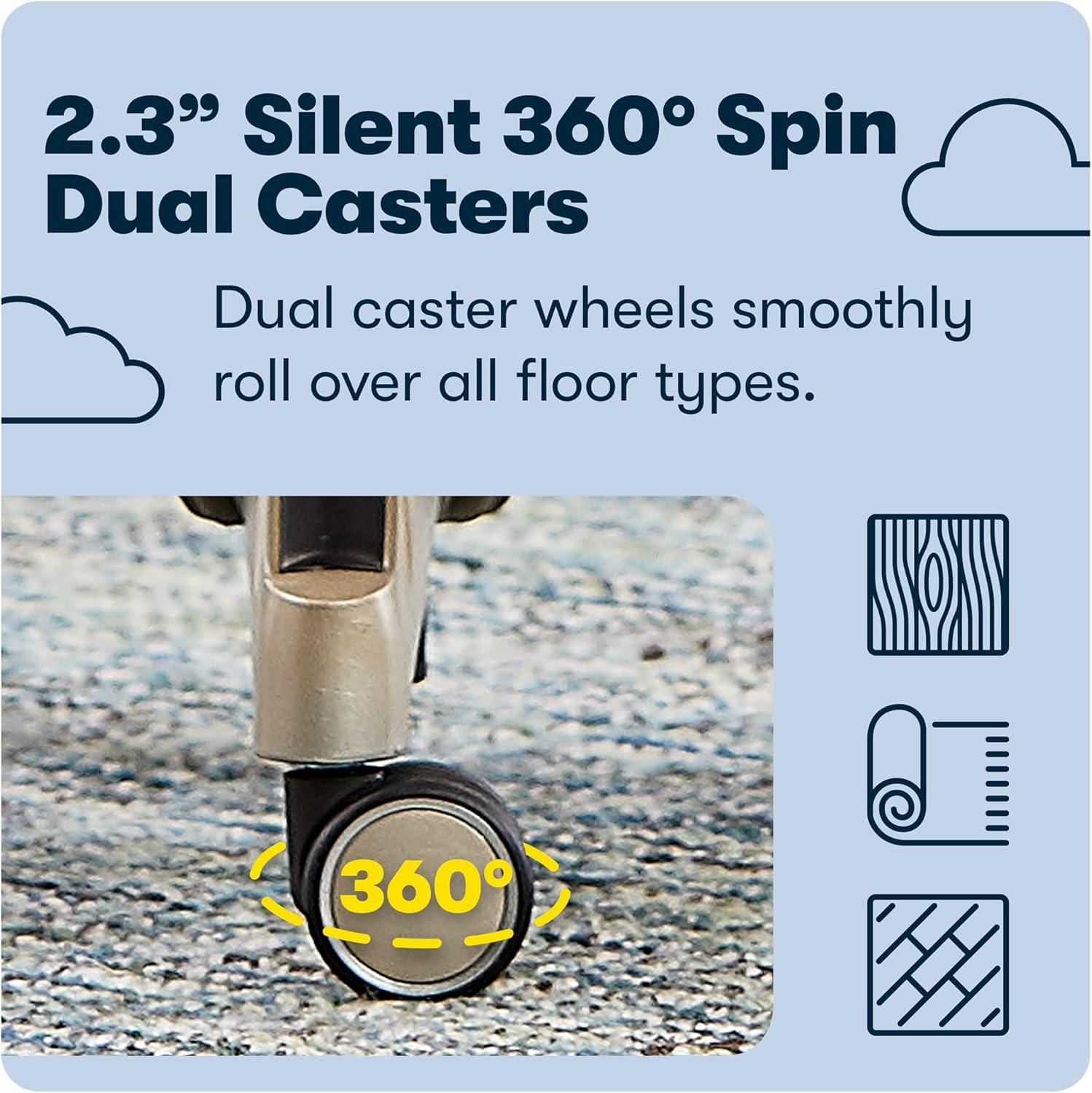 - Durability: Nylon swivel base and silent casters that glide smoothly and support up to 275 lbs.