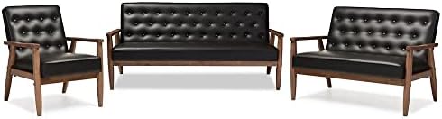 Baxton Studio Sorrento Mid-Century Retro Modern Black Faux Leather Upholstered Wooden 3 Piece ⁣Living​ Room Set