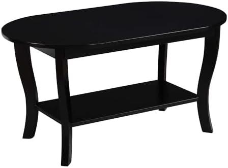 Convenience Concepts American Heritage Oval Coffee Table with Shelf in Black Wood Finish