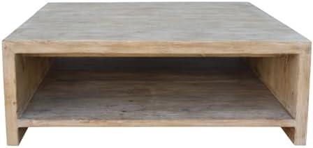 This handcrafted coffee table is a striking blend of elegance and functionality, crafted from reclaimed pinewood and designed to enhance any living environment. Measuring approximately 48 inches in width, it provides ample surface space while showcasing the unique natural grain of the wood. The square design coupled with a whitewashed finish creates an appealing rustic charm, making it a perfect fit for those who appreciate farmhouse and vintage aesthetics.