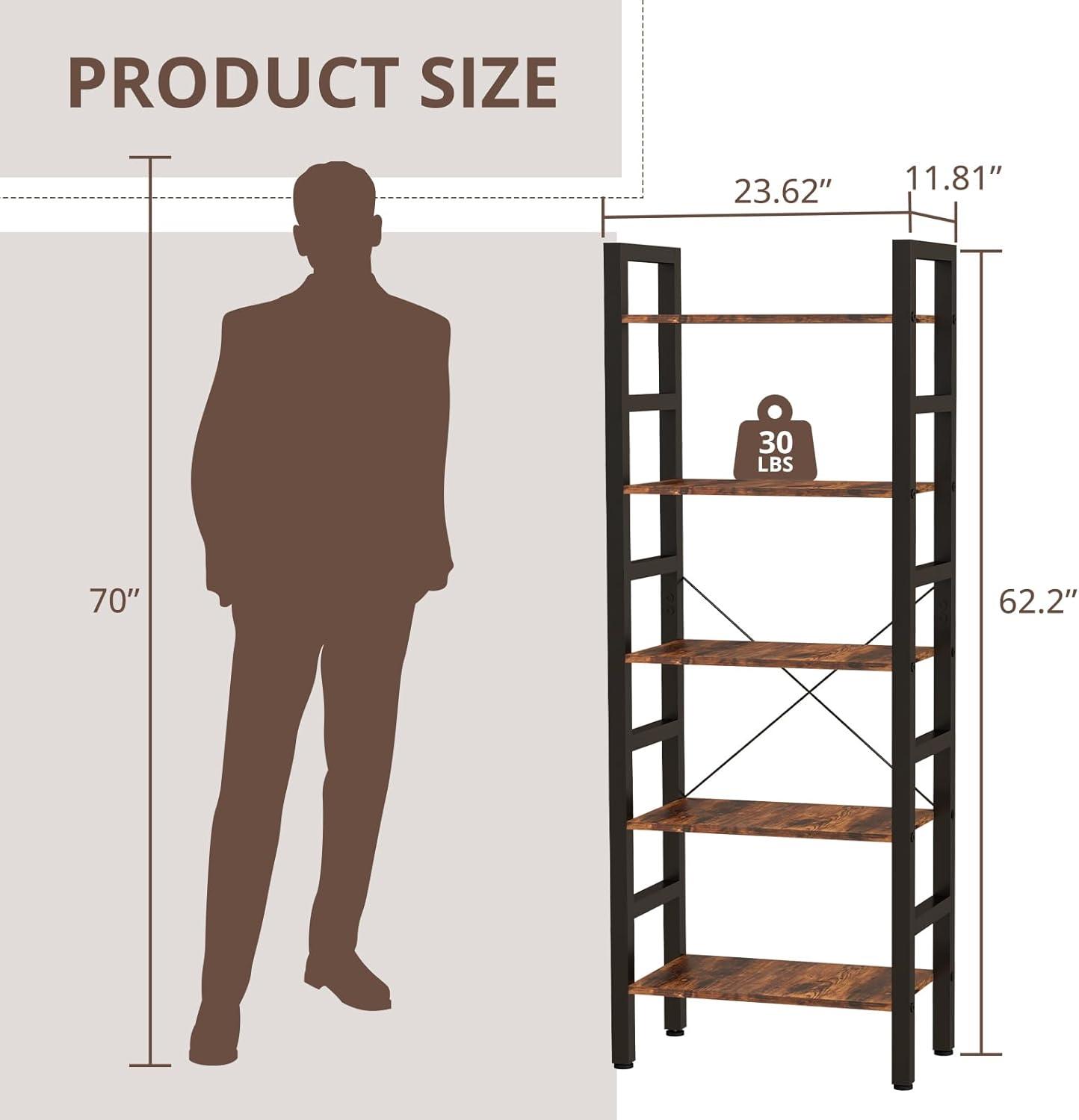 At first glance,the combination of wood shelves and a metal frame creates a beautifully balanced,vintage-inspired aesthetic that brings warmth and modernity to any space. Its tall, slender profile-measuring just under 24 inches wide and nearly 63 inches tall-makes it an efficient solution for rooms where floor space is limited but vertical storage is needed. The waterproof and scratch-resistant shelves not only promise durability but also maintain their rich brown finish over time, ensuring that the bookcase remains a stylish centerpiece in living rooms, bedrooms, or home offices. What truly impresses us is how each of the five shelves can comfortably hold up to 30 pounds, giving us confidence to display a diverse range of items, from heavy books to delicate plants.