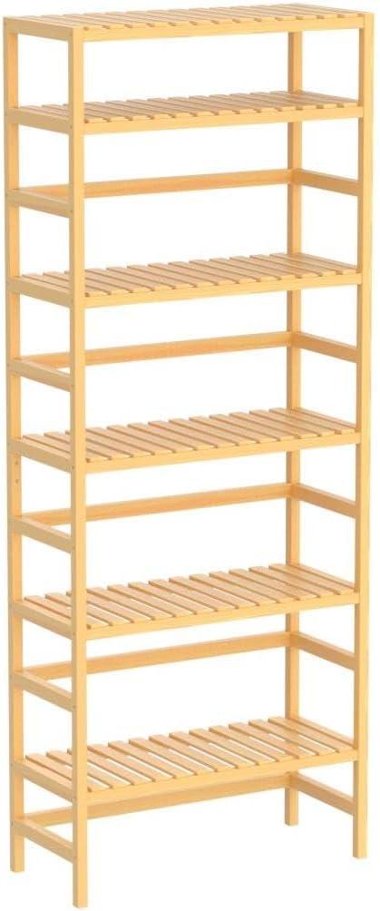 This tall, 6-tier bamboo shelving unit impresses with its blend of natural aesthetics and functional design. Its adjustable shelves allow us to tailor the space to fit books, plants, or decor of varying heights, making it incredibly versatile. Despite being lightweight at just under 19 pounds, the solid bamboo construction ensures durability that withstands daily use without sagging or bending. Plus, the included anti-tip fittings give peace of mind, especially in homes with kids or pets, by preventing accidental tipping.Its slim footprint makes it an excellent solution for smaller rooms where maximizing vertical space is key.