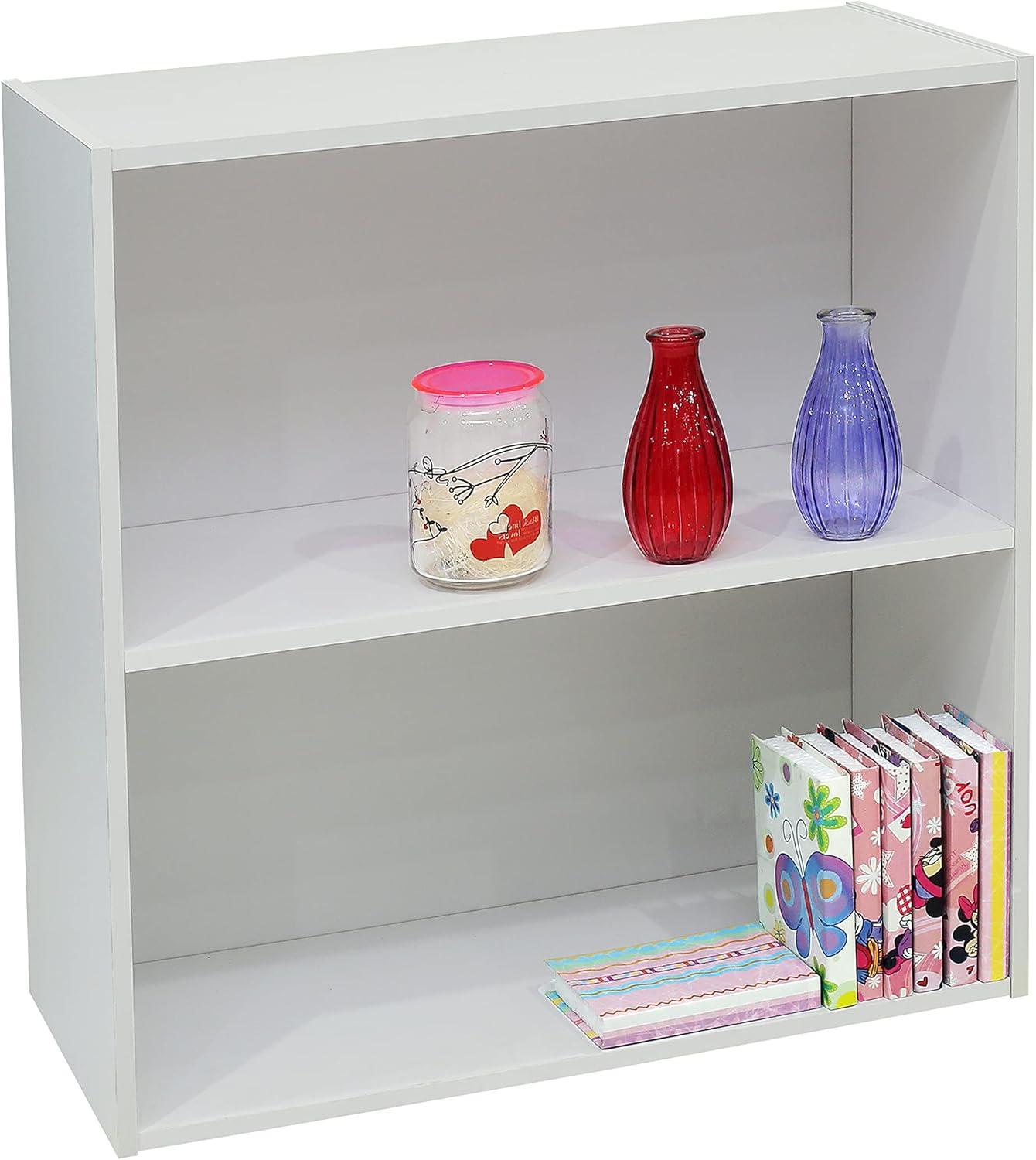 overview of the Kings Brand white Wood 2-Tier Shelf Bookcase