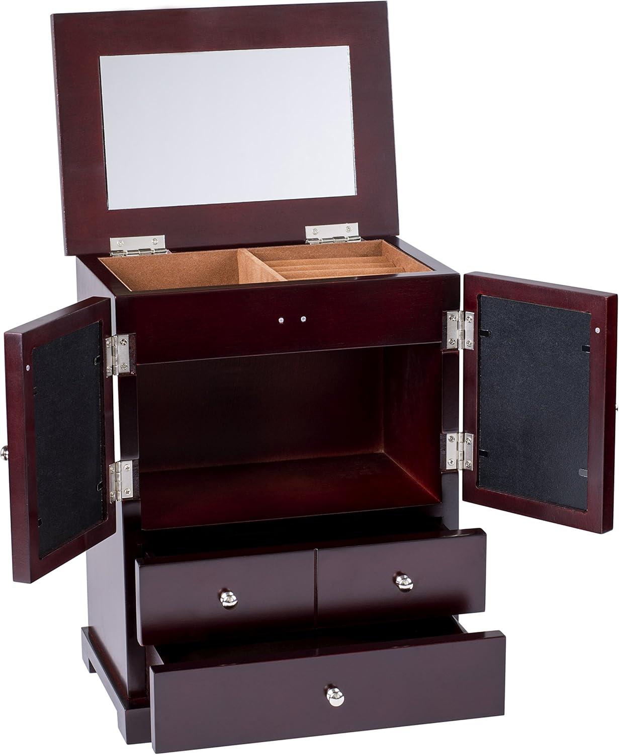 | Affordable price point for a quality wooden jewelry armoire. | Some reviewers note the finish can be prone to fingerprints. |