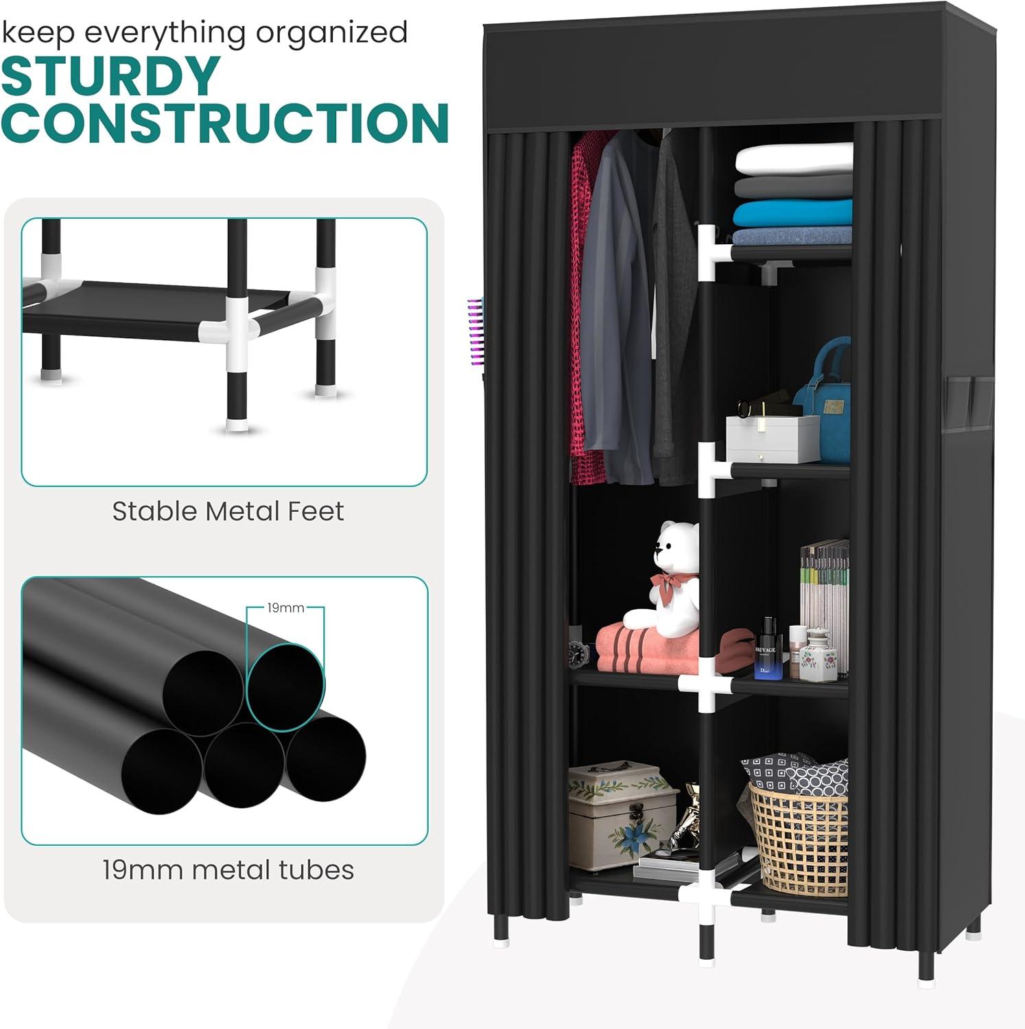 From the moment we unpacked ⁣this portable wardrobe, its thoughtful design was evident. Measuring‌ 32.5​ x‌ 16.5 x 66 inches, it strikes ‌an ideal balance-offering generous storage without overwhelming our limited space. The⁢ sleek black fabric ⁤adds a modern touch while the integrated hanging rack and six storage shelves provide​ versatile ⁢options for organizing clothes‍ and accessories. We especially appreciated ​how ⁣the unit encourages a ⁣clutter-free ‍environment by designating specific compartments for various items. Assembly was straightforward thanks to clear, concise instructions that made the setup process ‍quick and hassle-free.
