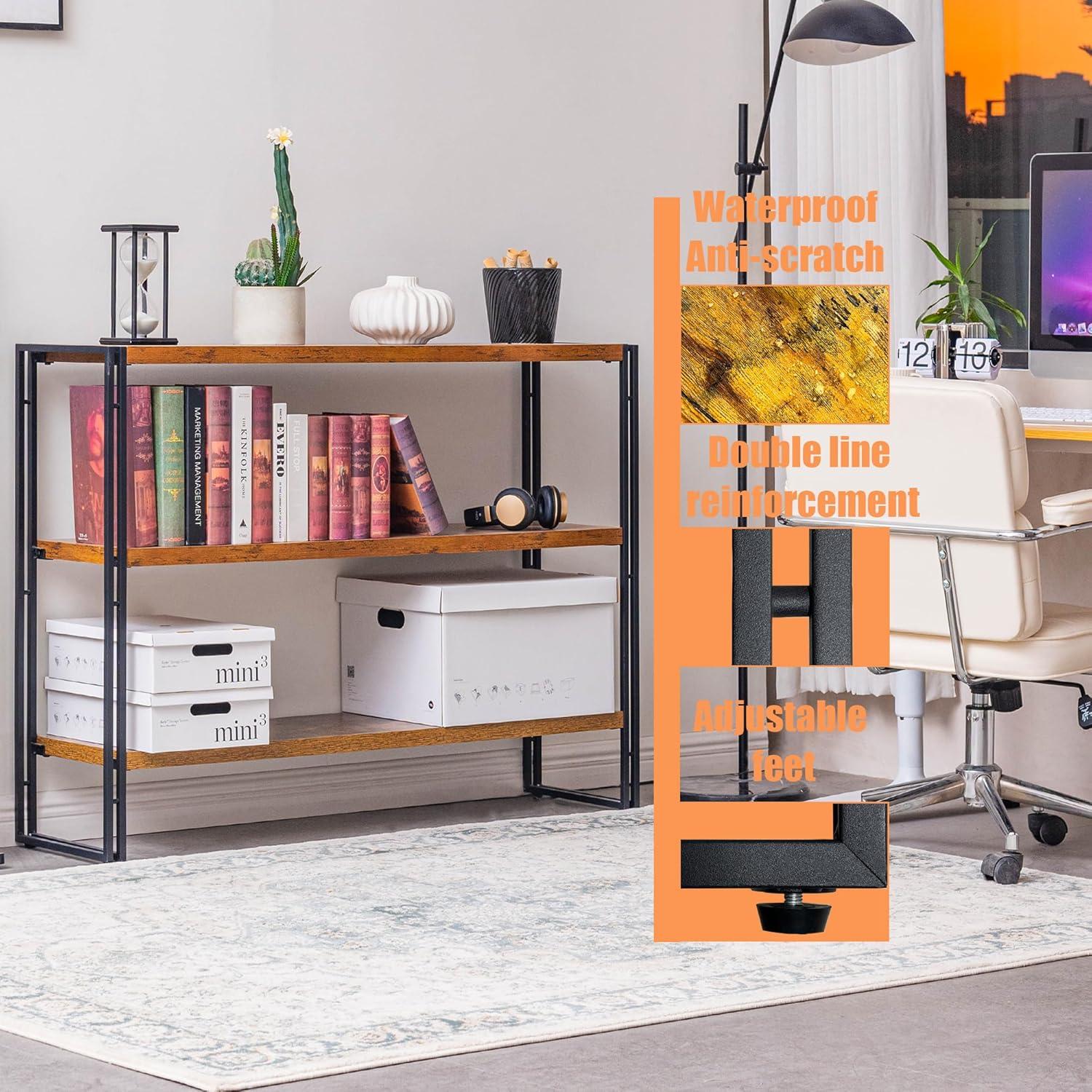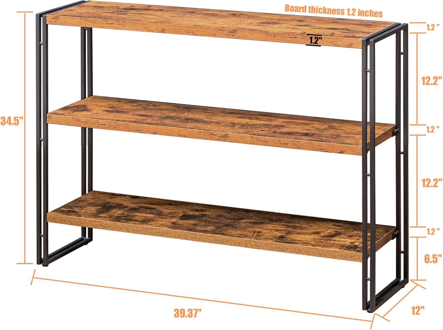 We recently had the chance to set up and test the 3 Tier Horizontal Bookcase in a rustic brown finish, designed with an industrial edge that fits seamlessly into various spaces like living rooms, home offices, and kitchens. Measuring a practical 12″D x 40″W x 34″H, this bookshelf promises sturdy support with its medium-density fiberboard shelves and durable metal framing. Over the course of our experience, we found the assembly straightforward and the overall design to balance both style and functionality. In the following review, we’ll share our detailed impressions on its build quality, weight capacity, and how well it holds up as a versatile storage solution.
