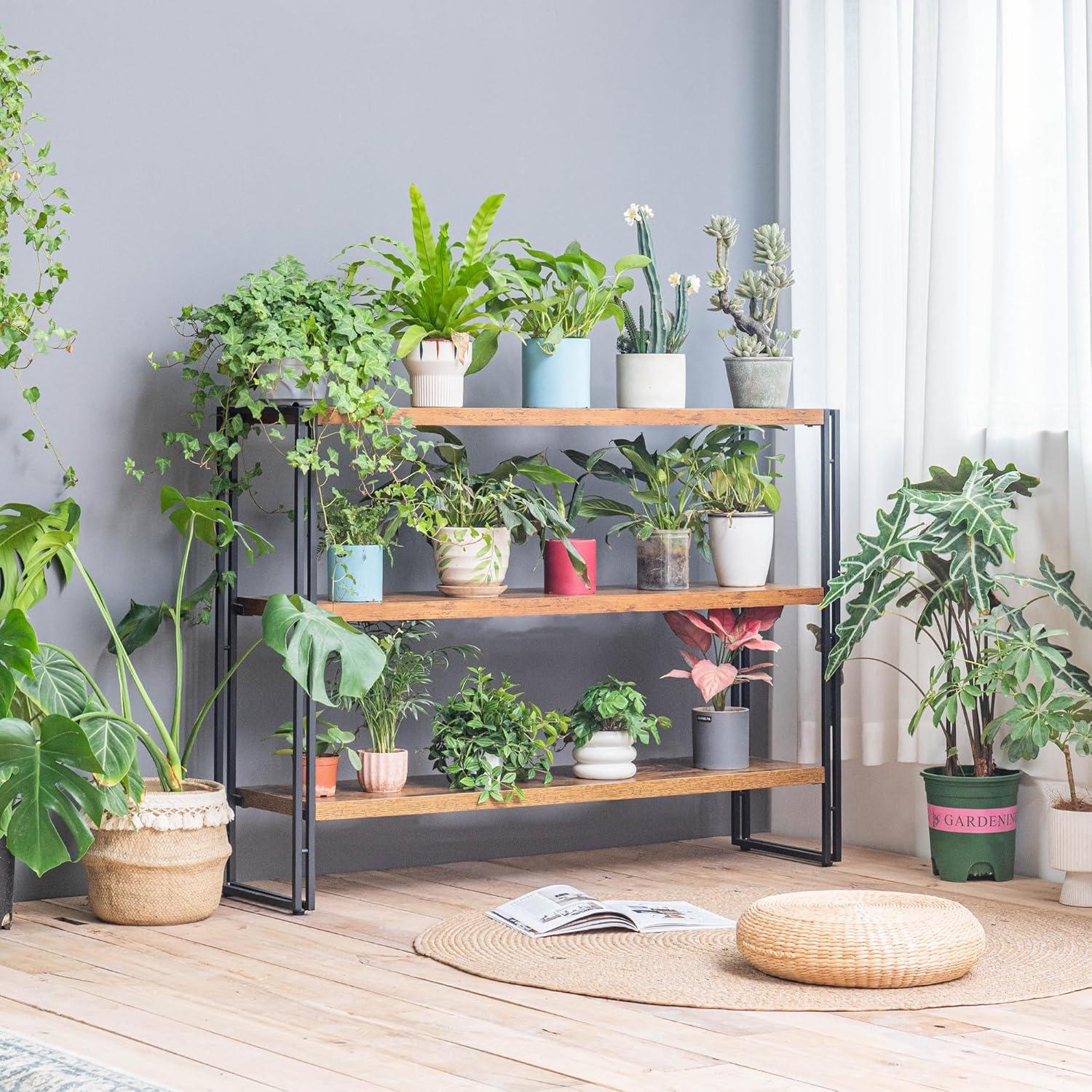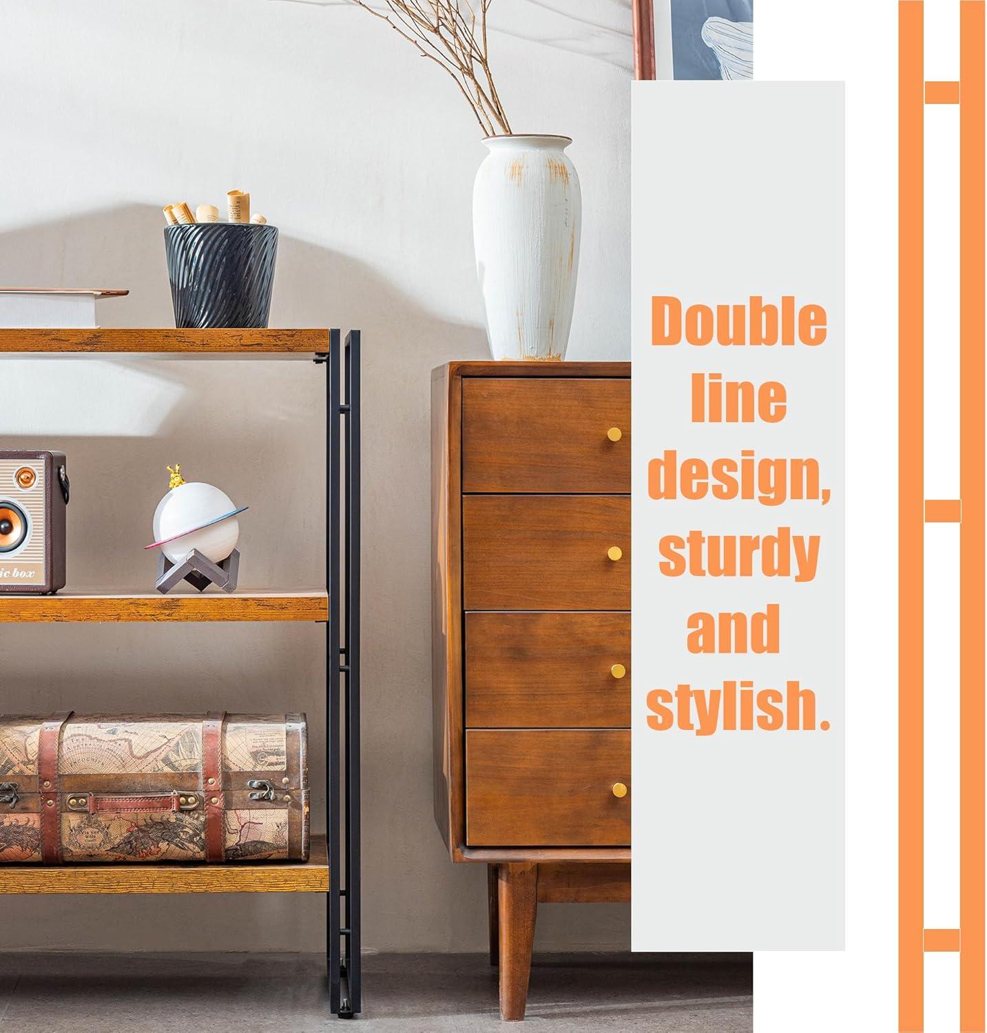 After thoroughly evaluating this piece, we find it to be a versatile and stylish addition to almost any room. Its robust construction-with medium-density fiberboard shelves supported by premium metal frames-ensures durability while maintaining a rustic yet industrial appeal. The three tiers offer generous storage and display space, perfect for books, potted plants, photo albums, and small décor items. Installation proved straightforward with clear instructions, making setup a breeze even for less experienced assemblers.Just keep in mind the 100-pound weight limit per shelf and place it on a stable surface to avoid tipping.