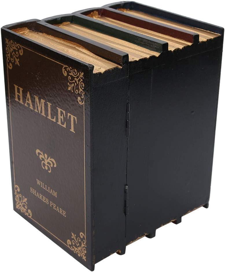 This elegantly crafted piece combines form and function seamlessly, designed from high-quality, sturdy wood to ensure lasting durability. Its realistic book-like appearance adds a subtle touch of vintage sophistication, making it an eye-catching decor element on any bookshelf, desk, or coffee table. more than just a decorative item, its solid construction guarantees it withstands daily use without compromising its charm or quality. the compact yet spacious interior offers an ideal storage solution, especially for organizing jewelry or small trinkets, making it both stylish and practical.