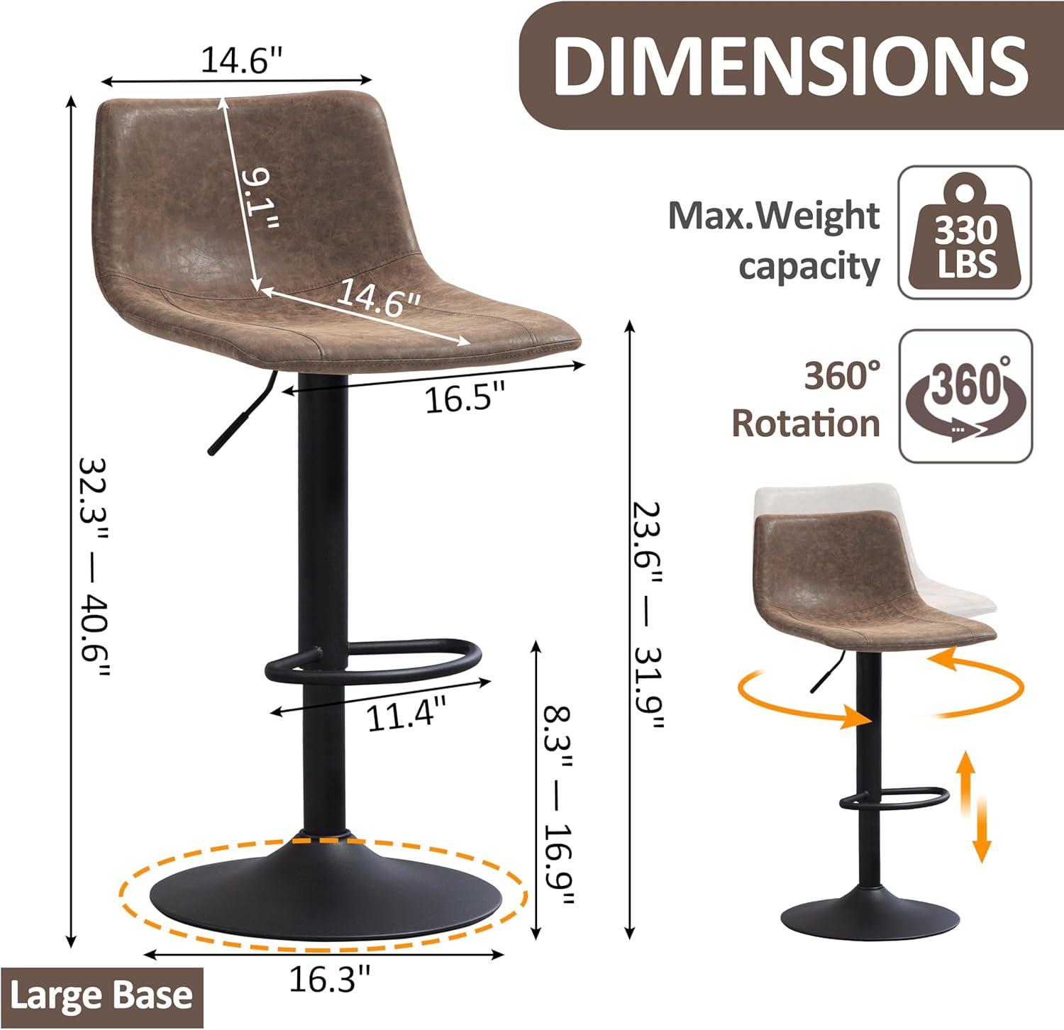 When you bring the pair into your kitchen and set them down, the first thing you notice is how‌ the seats sit in the space: the curved L‑shaped backs⁣ create a low-profile​ silhouette that takes up less visual height than a full chair, ⁣and the vintage brown surface reads matte and slightly textured under the⁤ lights. Running your hand across​ a cushion, the foam gives with a soft, ⁤familiar resistance and the⁤ upholstery shows small, ⁤natural creases where seams meet — you find yourself smoothing them with a thumb out ⁣of habit. The chrome column and round base catch reflections from the countertop; the bases have a thin rubber edge that presses flat against the floor without making noise as you nudge a stool ‌into place.