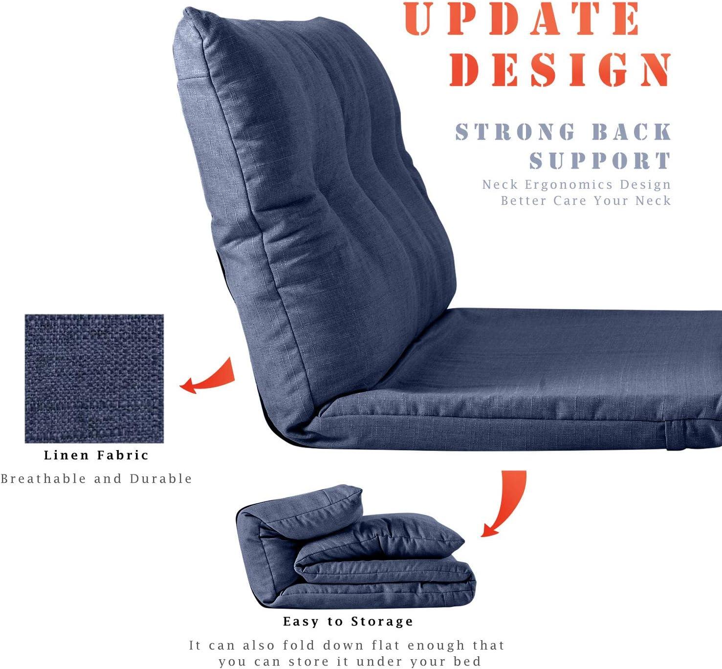 Over months, the Upgraded Version Adjustable Floor Couch Floor Sofa Bed with 5 Adjustable Reclining Position, Foldable Japanese Floor Futon, Lazy Lounge Couch for Living Room, Bedroom (Navy) (Navy) settles into corners and routines, softening its angles as the room is used. In daily rhythms you notice it moving from occasional extra seating to the spot you drift to with a book or a folded blanket, its recline choices becoming small, unthinking gestures. The fabric collects the faint abrasions of regular use and the cushions relax where you sit most,and it eases into conversations,chores,and quiet evenings without announcing itself. you live around it, and in time it stays.