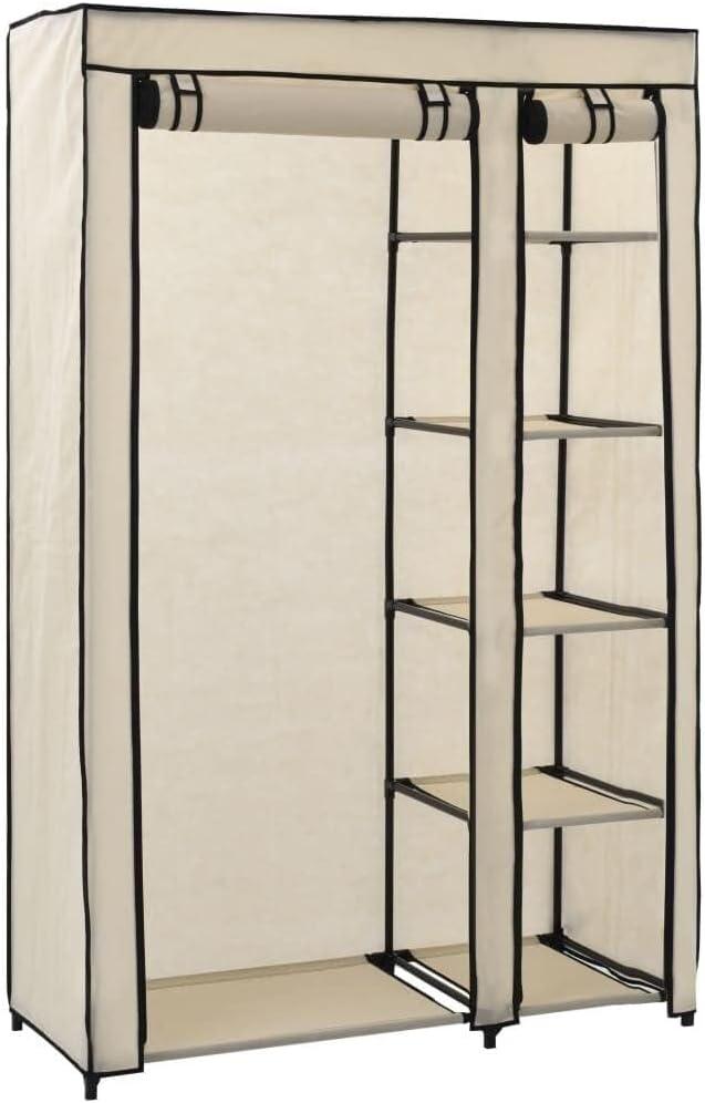 Living with the Folding Wardrobes 2 pcs Cream 110x45x175 cm Fabric, Steel Tube Frame, Space-saving, Easy Assembly quietly shifts from a new object to a familiar presence over time, folding into the background of regular household rhythms. Its role is noticed in how the room is used — a jacket slid in between chores, a faint change where hands touch the fabric, small scuffs that trace ordinary movement — rather than in any first-day impression. In daily routines it softens into habit,offering easy access and a low, consistent comfort as items come and go. It becomes part of the room and stays.