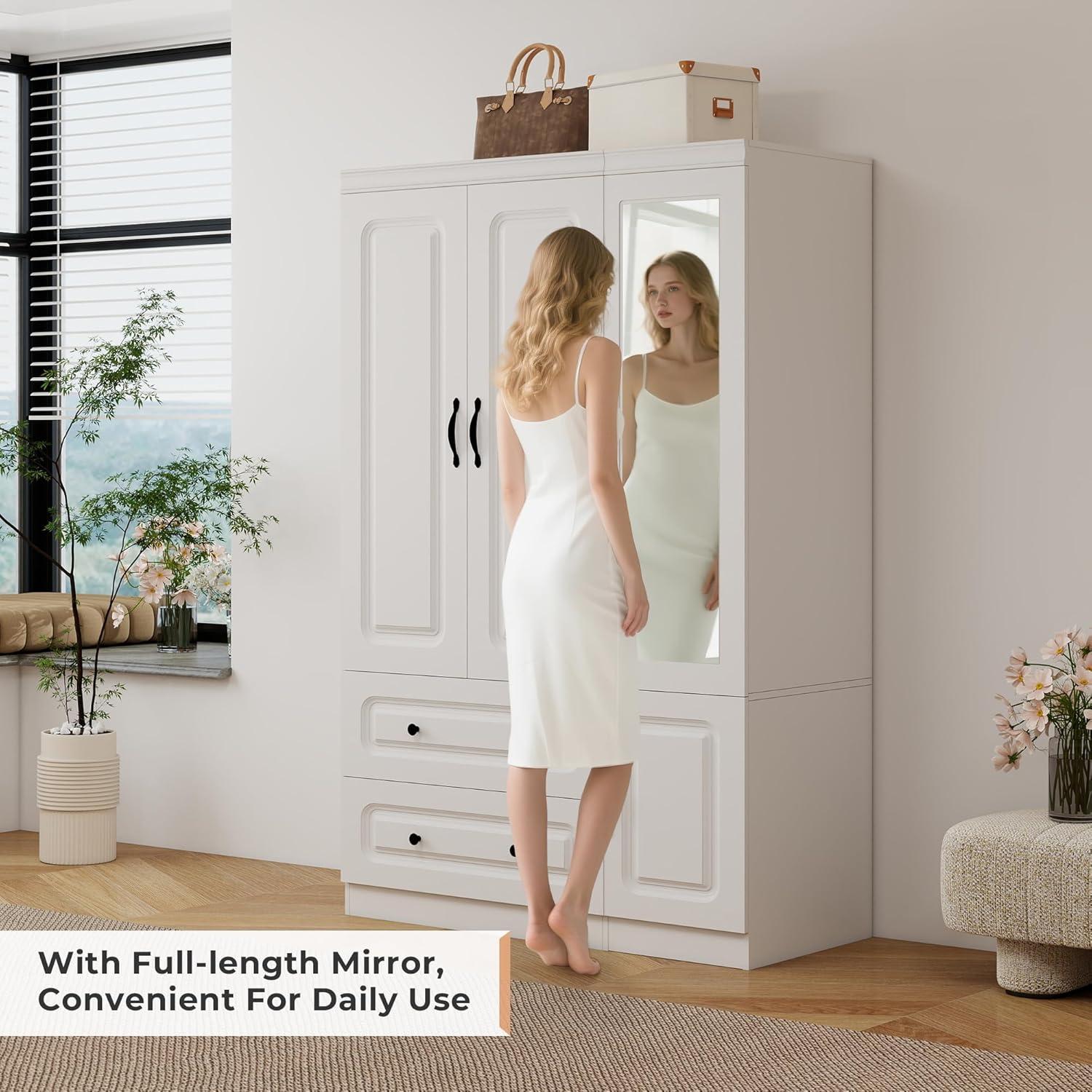 Elegant⁣ white⁤ finish with a full-length mirror, adding sleek ‌style​ and function to ⁢the bedroom Depth ⁤may feel slightly shallow for ‍bulkier‌ items or larger storage needs