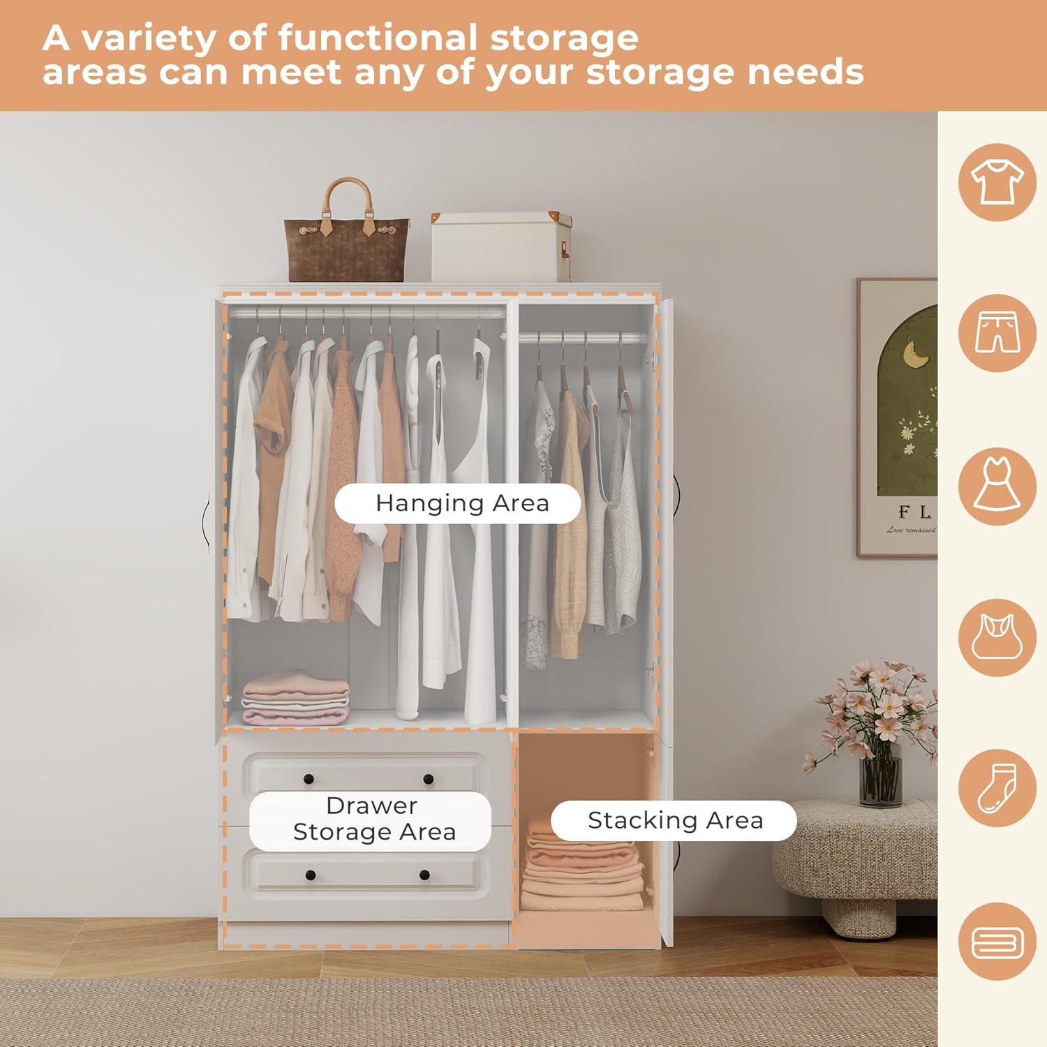 Beyond ‍aesthetics,the versatile interior layout ⁤offers ‌exceptional functionality to‌ suit varied storage​ needs. With three doors ​ leading to two ⁢hanging rods and multiple shelves, alongside two spacious drawers, ‌it provides organized solutions⁣ for everything from delicate blouses to ⁤bulkier sweaters. Here’s a quick overview of its‍ adaptable features‍ that fit into ⁤diverse bedroom environments: