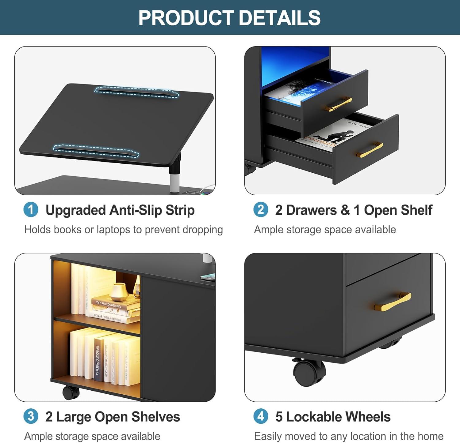 After a few weeks and then months, you notice the Gurexl 360° LED Nightstand with Wireless Charging Station, Movable Adjustable Bedside Table with Laptop Tray, Auto Sensor Night Stand for Bedroom (Black) settling into routines rather than standing out. In daily rhythms it becomes the spot where your phone, a book, a glass of water leave their small traces, the surface picking up faint scuffs and the edges softening with use. You find it behaving as part of comfort—within easy reach for late reading, shifting position as the room is used for work or rest—and those small habits make it feel familiar. Over time it simply stays, rests, and becomes part of the room.