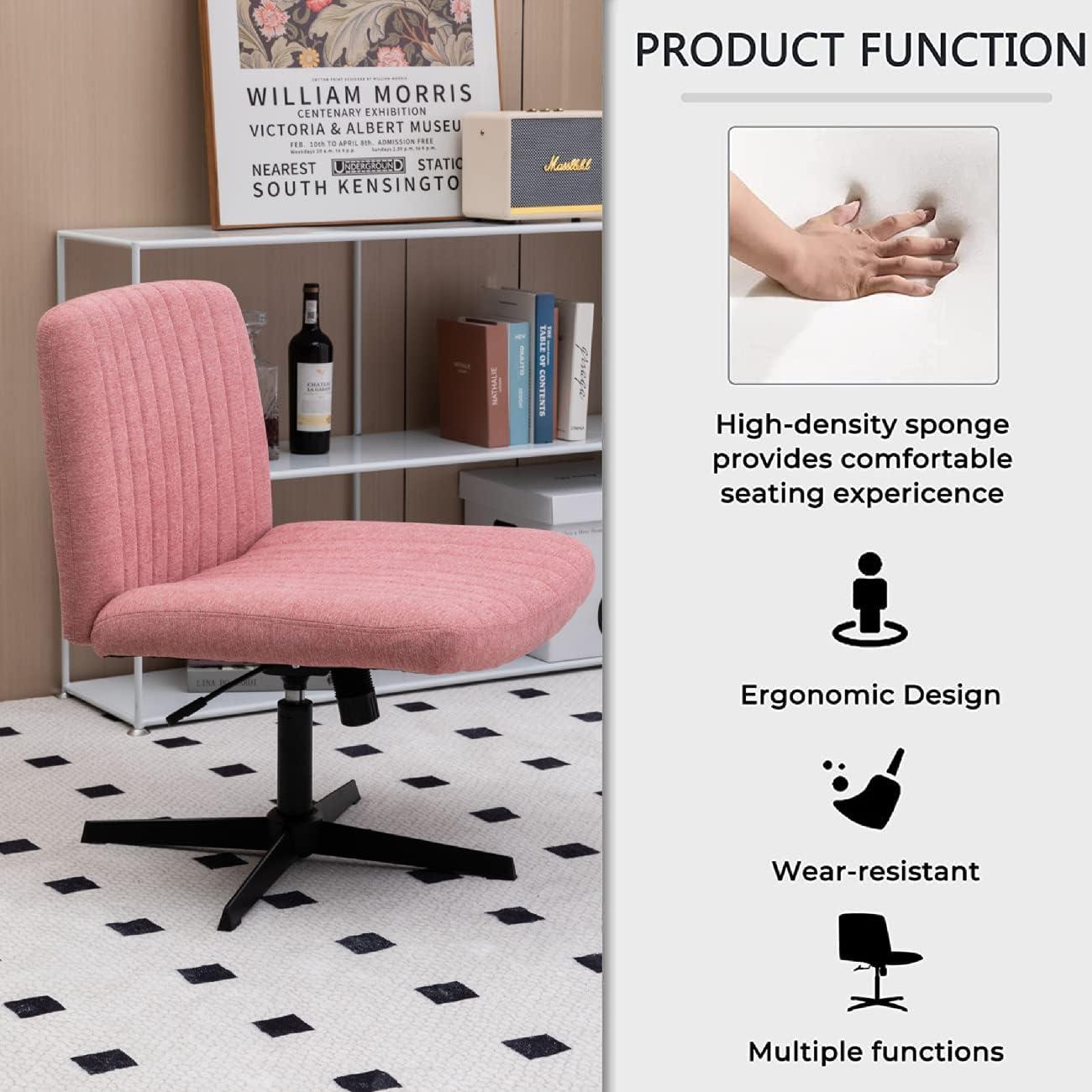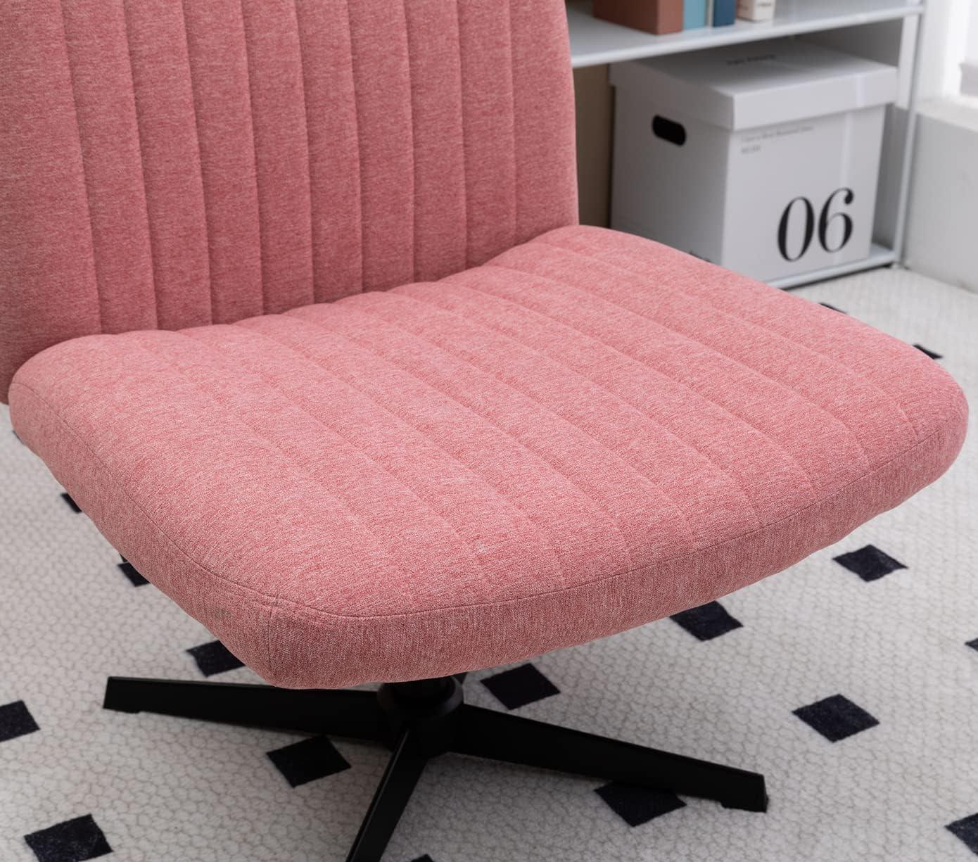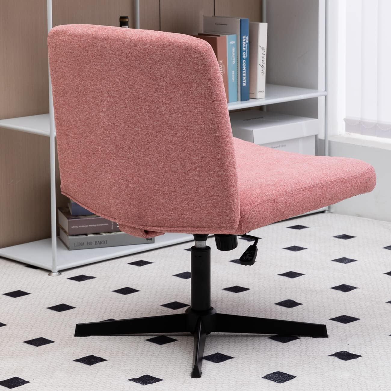 Living with the HAWGUAR Armless Wide Office Chair No Wheels Fabric Padded Desk Task Vanity Swivel Home 120°rocking Mid Back Ergonomic Computer for Make Up,Small Space, Bed Room(Mix-Pink) (5003) means it quietly settles into corners of your day rather than arriving as a statement. Over time you notice how it slips into small-space routines — under a desk,beside a vanity,holding a sweater — and how the fabric softens and catches the light as the room is used in regular household rhythms. Comfort shifts in familiar ways as you sit and move, the mid-back posture becoming part of your motions and the surfaces showing the slow patina of everyday use. After a while it stays.