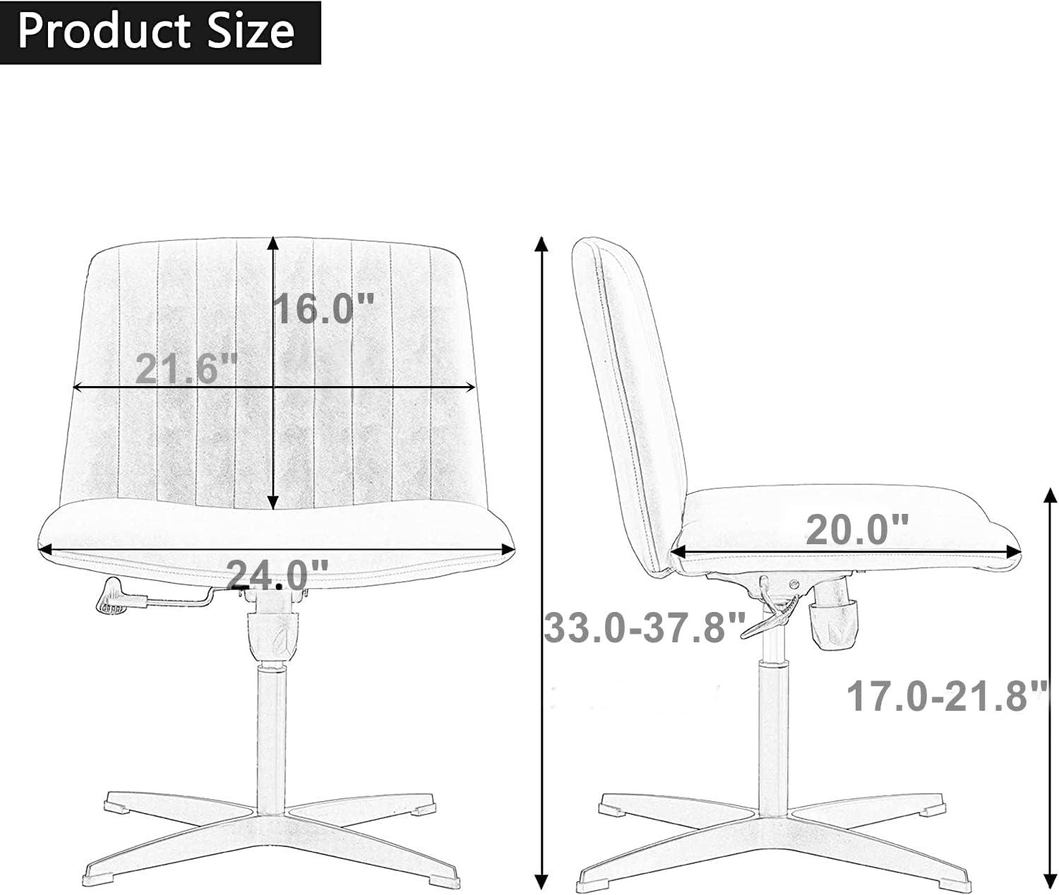 | Seat height (range) | 17.7″–21.7″ | To confirm clearance under desks, vanities, or tables at both extremes of the adjustment |