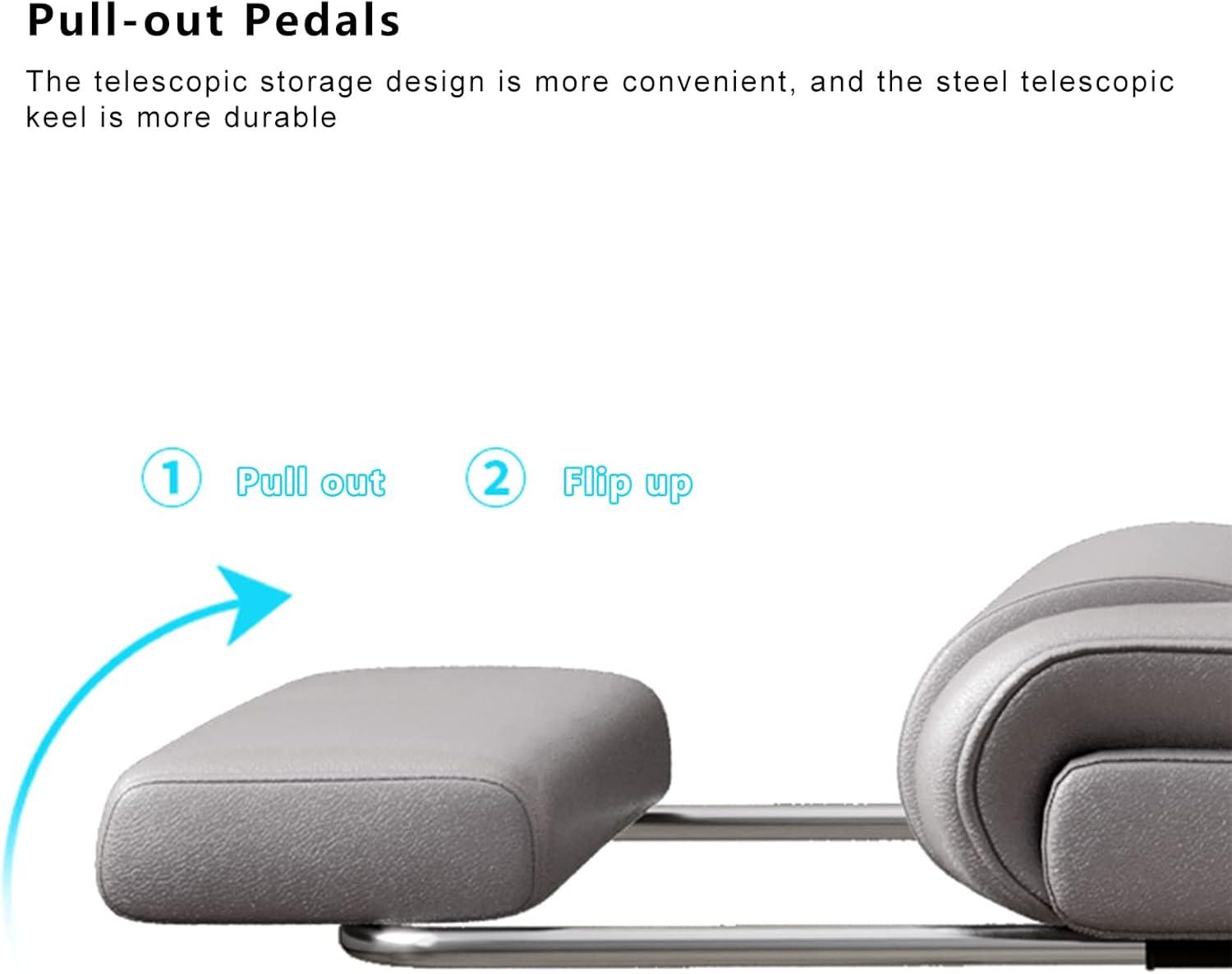 The footrest pulls out from beneath the seat on a simple sliding track and extends forward in one smooth motion. You can habitually tug it out with one hand or hook a heel to draw it into place; when extended it supports your lower legs without a hard stop, so there’s a slight give when you rest weight on it. Pushing it back under the seat takes a firm, even shove to realign it with the base—sometimes you end up nudging the fabric or flattening a seam as it tucks away.