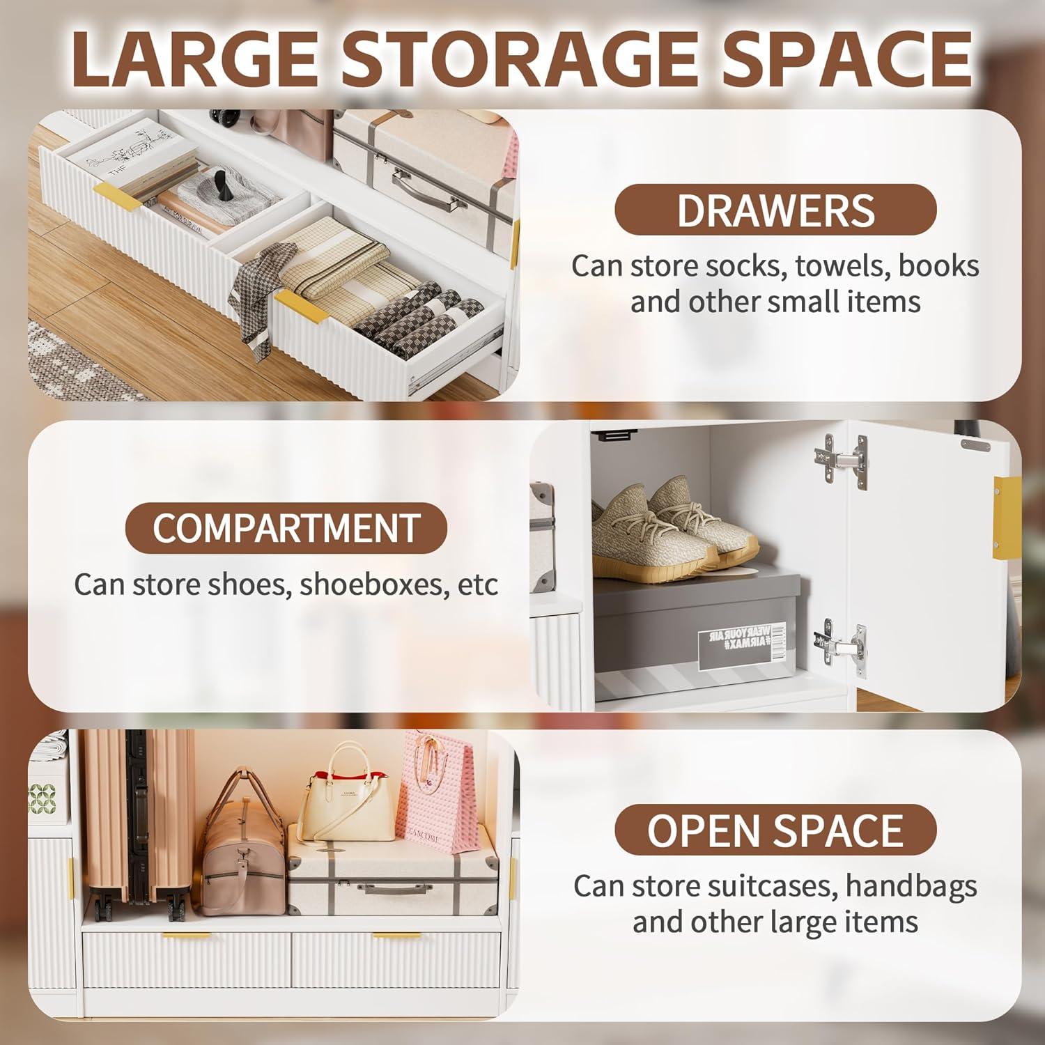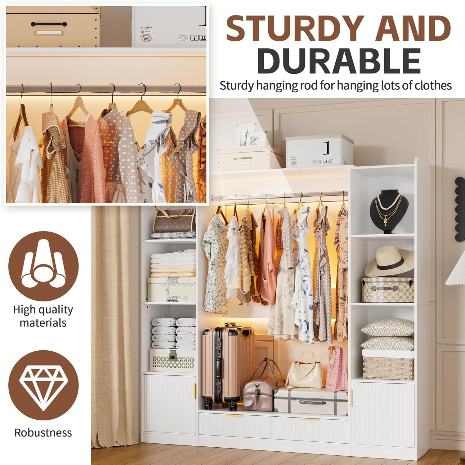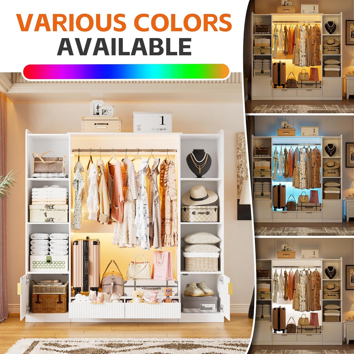 Beyond aesthetics,‍ the ⁣system offers practical longevity through ⁤its solid construction and versatile use. The multi-color variable LED lighting adds ⁤a unique touch, enhancing ‌the wardrobe’s​ appeal⁤ while serving as a convenient nightlight feature. Storage compartments, including spacious ‌hanging ⁢areas, multiple open cabinets,​ and two wood drawers, feel sturdy and well-built, ideal for organizing⁣ essentials securely.⁣ This attention to durable materials and smart ‌engineering guarantees‍ that the closet will ‍hold up​ well under regular use while‌ maintaining its polished finish.