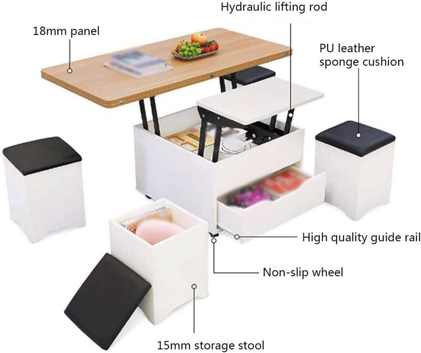 The precision in assembly and attention to ergonomic design truly reflect quality craftsmanship. The hydraulic lift operates smoothly and silently, allowing the tabletop to glide effortlessly to a comfortable height for working, dining, or leisure. The hidden compartments,paired with comfortable PU leather storage stools,showcase thoughtful design marrying function with aesthetics. The build feels sturdy yet refined – a perfect balance for an office or living room centerpiece that will endure daily use without compromising its visual appeal.