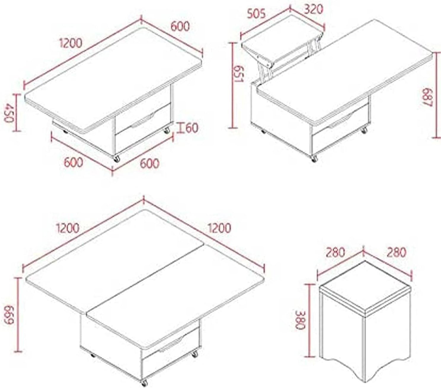 Our experience with this coffee and tea table set has been overwhelmingly positive,especially due to its innovative lift top design that effortlessly transforms the table into a versatile workspace. The hydraulic lifting rod operates smoothly and silently, allowing us to adjust the height comfortably without any hassle.This makes it ideal for working on a laptop, dining, or even writng while relaxing on the sofa.The 360° rotating non-slip wheels glide quietly and lock securely,giving us mobility without sacrificing stability. The hidden storage compartments beneath the tabletop and the additional baskets have made organizing our living space far easier, offering a convenient spot for magazines, snacks, and remote controls.