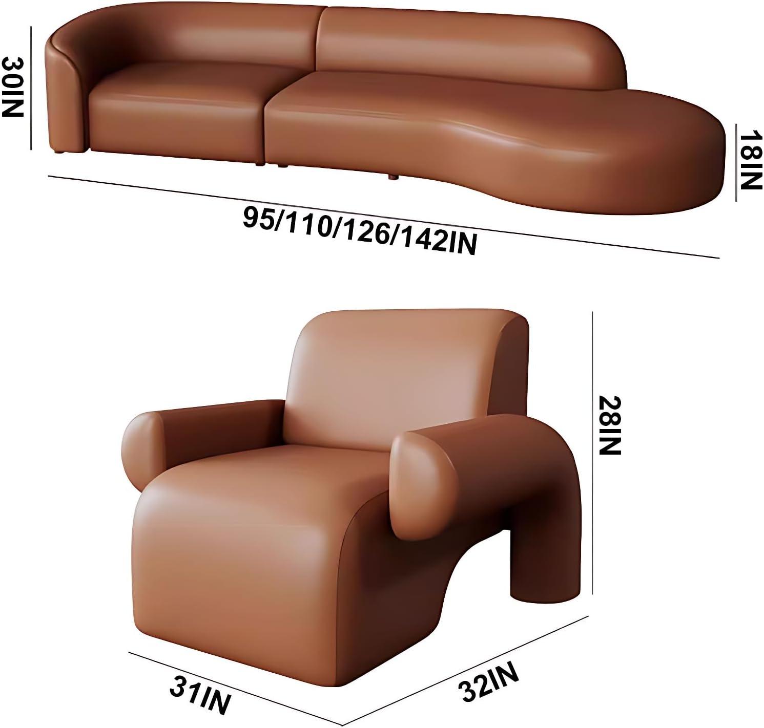From the‍ moment we unboxed ⁢this⁤ sectional sofa set, its sleek curved design immediately‌ impressed us. The ⁤ergonomic shape isn’t just for looks-it cradles the back and waist​ in just the right way, making it feel​ like this couch was tailored for comfort. The wide seats, cushioned with ​high-density sponge,​ provide a plush⁤ yet supportive feel that invites you to sink in and ‍relax. Wrapped in a soft brown leather that’s both easy to clean and remarkably‍ durable, it strikes a​ perfect balance between elegance and practicality.​ We also appreciated the solid ⁤wood frame beneath-it feels sturdy and promises longevity, giving us confidence that this is a piece built to withstand years of use.