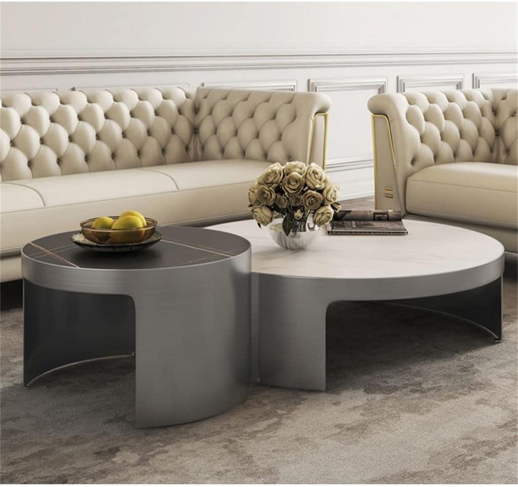 Our experience with this small coffee table highlights its striking balance between function and modern elegance. The combination of a white slate tabletop that resists high temperatures and maintains a pristine appearance over time, paired with a strong stainless steel frame featuring a titanium-plated gold finish, delivers not only durability but a lasting sense of sophistication. The surface’s glazed sealing ensures it remains easy to clean and resistant to fading,while the natural air permeability of the slate adds a subtle texture that enhances its overall visual appeal without overwhelming the space.