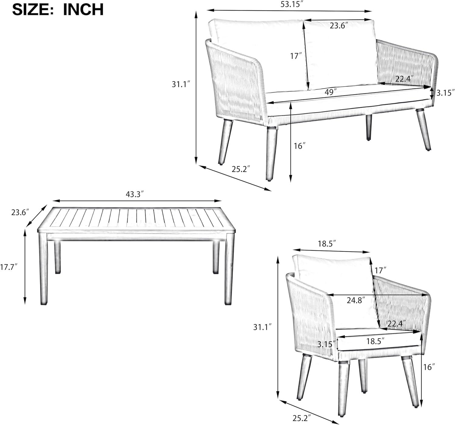 Our experience with this outdoor seating collection has been remarkable, seamlessly blending aesthetic appeal with practical design. The handwoven nylon rope crafted around the durable metal frames offers not only a visually captivating bohemian vibe but also durability that stands up to various weather conditions without fraying or fading. The acacia wood accents add warmth and sophistication, elevating the overall look of our patio. We appreciated the modular nature of the set, allowing us to rearrange the loveseat, chairs, and table to suit different occasions-from intimate chats in the afternoon sun to relaxed evenings with friends.