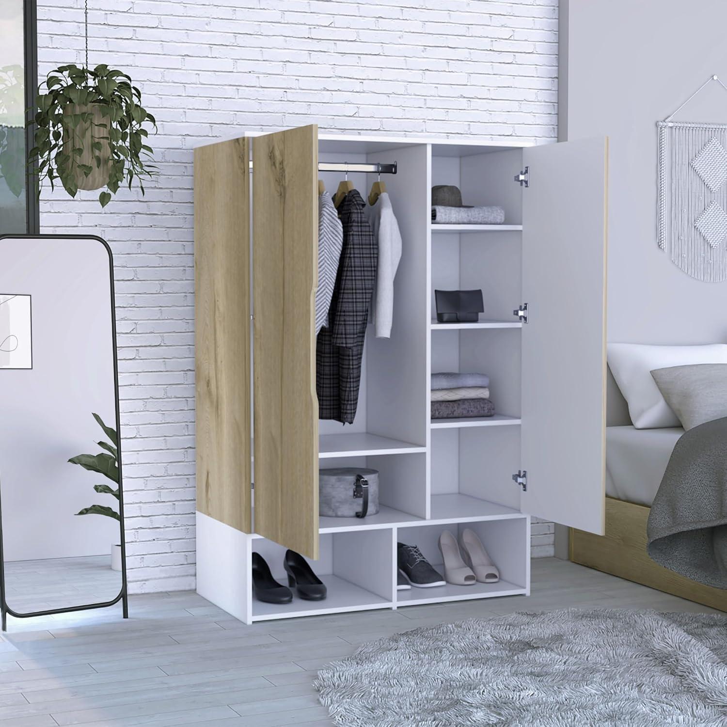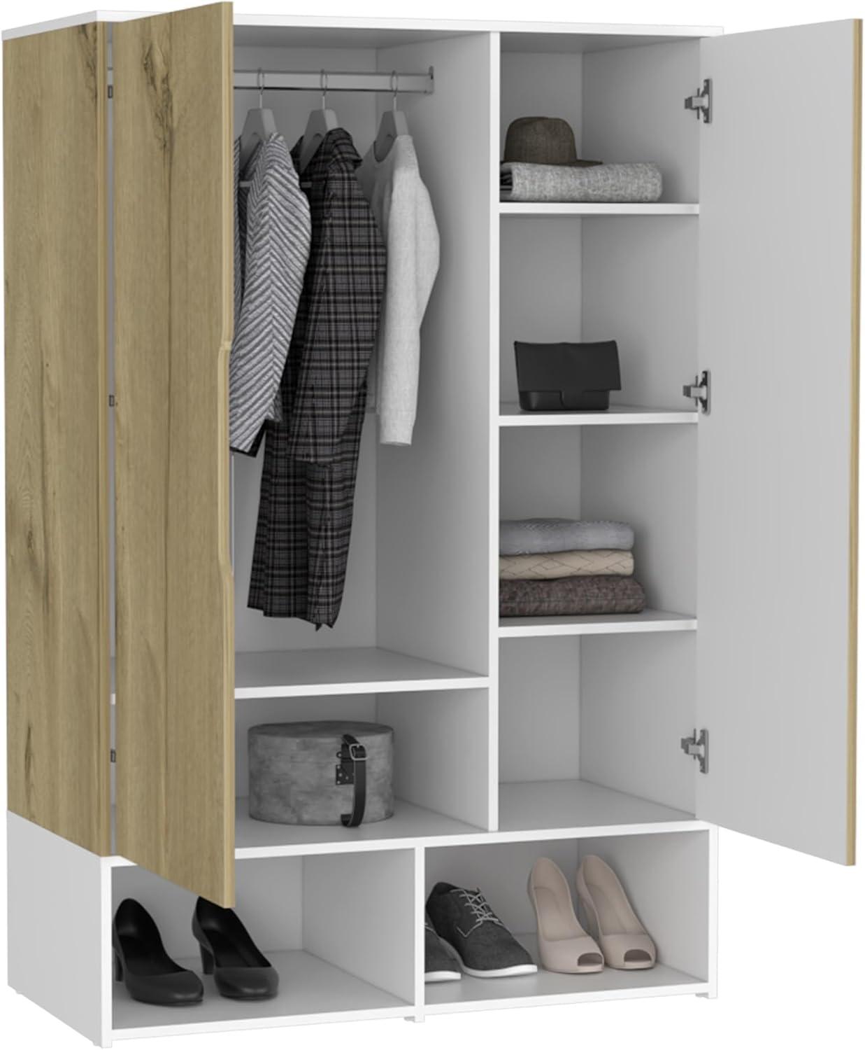 combining functionality with a sleek, modern ​look, this wardrobe armoire elevates bedroom association without overwhelming ⁤your space.⁣ The light oak ⁤and ⁢white finish brings ‍a fresh and ‌airy⁤ feel, seamlessly⁢ complementing ‍various interior⁣ styles.Its double⁢ doors conceal a⁤ spacious interior complete with a hanging rod, five shelves,‌ and ⁤two ⁤open shelves, allowing us to neatly⁤ arrange everything from dresses and⁤ coats to folded clothes ‍and accessories. The inclusion of metal handles and a smooth metal rail enhances usability, while the solid engineered wood construction ensures long-lasting durability that meets everyday storage demands.