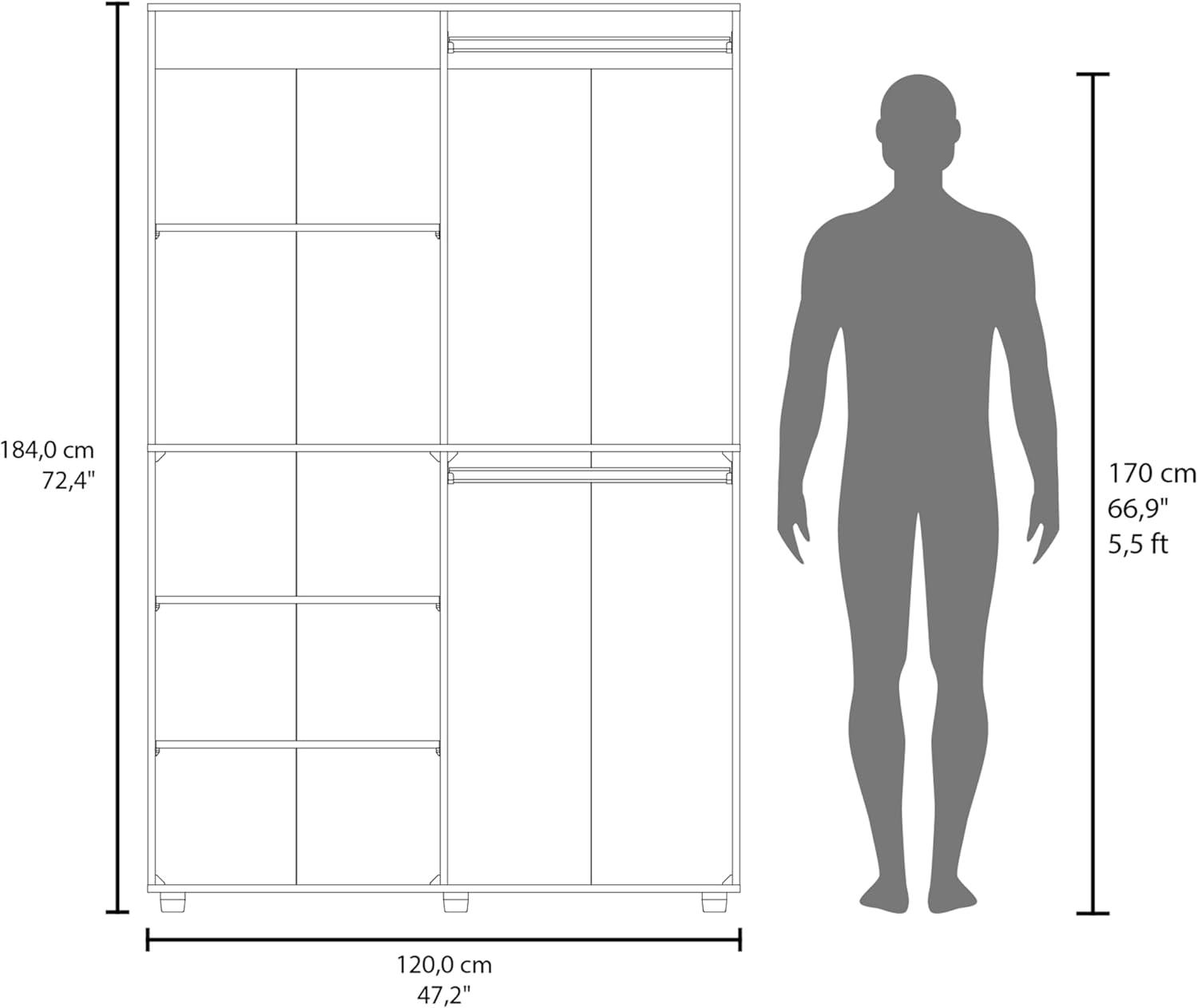 | Vertical Storage Maximized: Standing tall at 72″, it uses vertical space brilliantly for hanging clothes and shoes. | Height Considerations: Taller users may find reaching the top shelves a bit inconvenient without a step stool. |