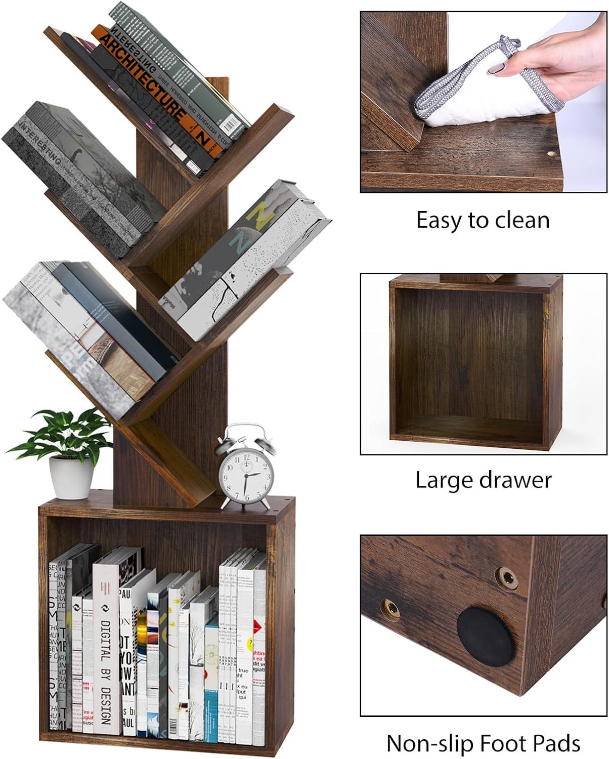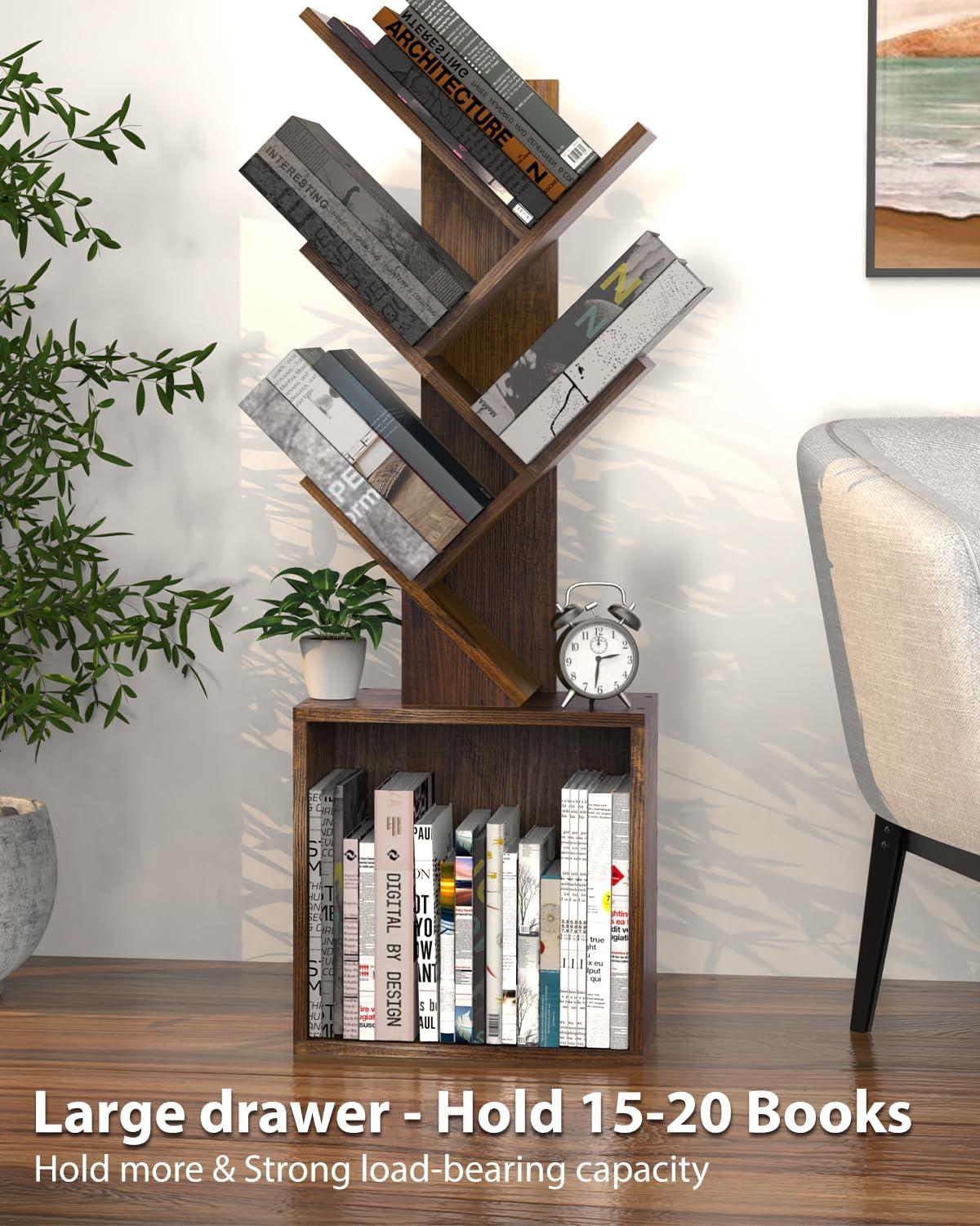 In our experience,this bookshelf has proven to be a perfect blend of ​style and⁣ function. Its distinctive tree-inspired design brings a modern yet rustic charm that fits seamlessly into various rooms-be‌ it our cozy reading ‌nook, living room corner, or home office. the tall, narrow structure is ideal for smaller spaces, providing ample storage without overwhelming the area. Each of ⁢the five shelves holds anywhere from 5 to 10 books comfortably, while the large drawer adds concealed storage ‍for larger or more personal items. The sturdy MDF construction and solid base give us confidence in its durability and stability, especially since it comes with anti-toppling hardware, an meaningful safety feature for any household.