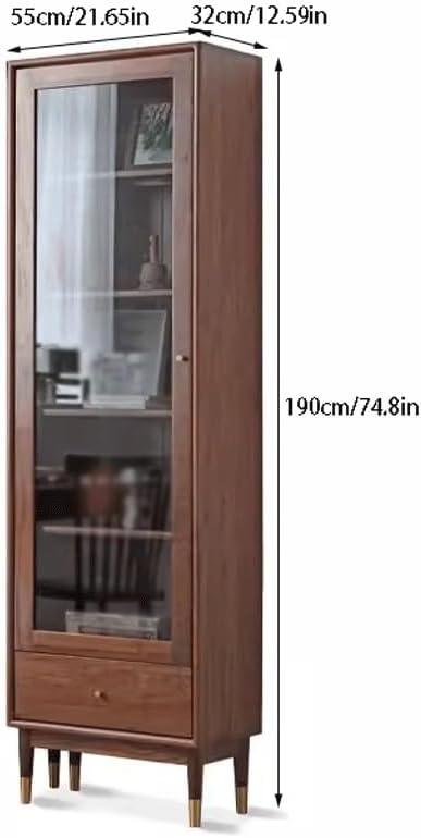 The addition of the glass door transforms this vertical bookcase from a simple storage unit into a sophisticated display cabinet. It offers functional protection by shielding books and collectibles from dust while still allowing them to be fully visible. This balance between accessibility and preservation is perfect for anyone who values their collections and wants to keep them in pristine condition without sacrificing aesthetic appeal. The glass door also creates a sleek, modern profile that enhances the overall elegance of the black walnut wood finish and brass accents.