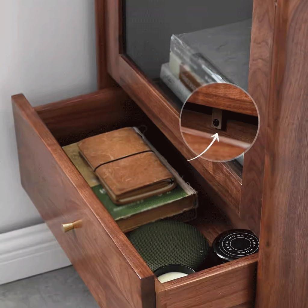 What immediately drew us in was the timeless elegance of the black walnut wood, enriched by subtle brass accents that add a touch of sophistication without overpowering the design. The natural wood grain flows beautifully across smooth, expertly finished surfaces, giving the piece a warm and inviting aura. The thoughtfully designed height and proportions-standing nearly 75 inches tall with a modest footprint-make it perfect for fitting into tighter spaces, while still offering ample room for display and storage.