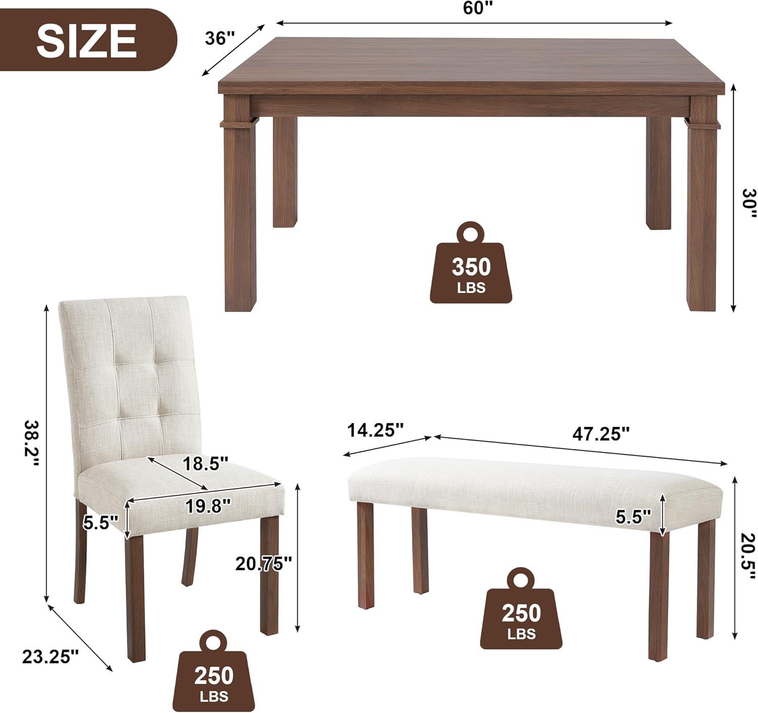 After spending time with the SOFTSEA 6 Piece Kitchen Dining Table Set, we’ve truly come to appreciate how it strikes a perfect balance between comfort, style, and everyday practicality. From the smooth walnut finish and sleek rectangular tabletop to the thoughtfully cushioned chairs and versatile bench,this set fits effortlessly into our home - whether for casual family dinners or lively gatherings. The robust rubberwood construction gives us confidence in its durability, while the straightforward assembly made setting it up a breeze. If you’re looking for a dining set that brings both warmth and function to your space, this could very well be the one for you.