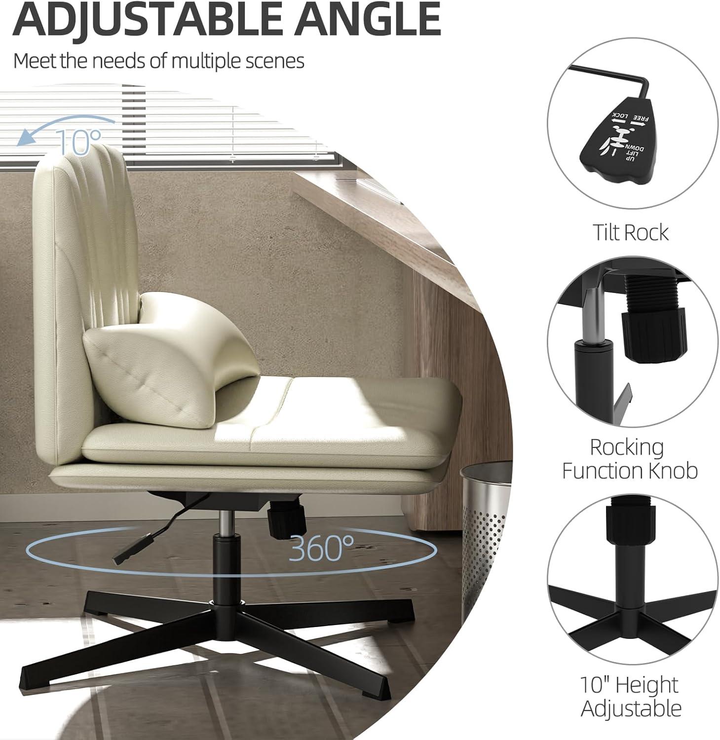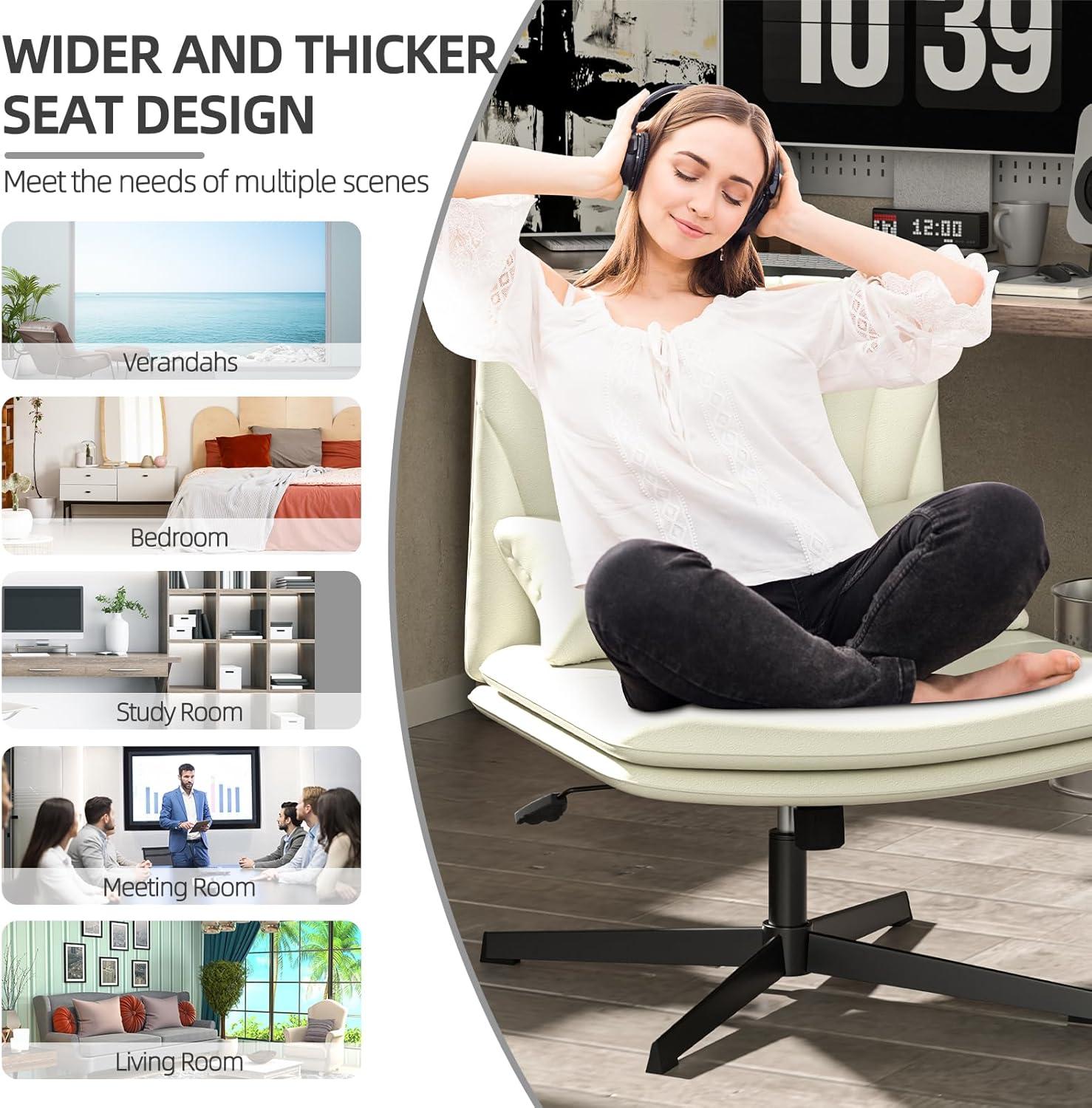 After thoroughly testing and analyzing this chair, we believe it offers a unique seating experience especially for those who prefer a generous and comfortable surface area. Its wide seat and soft, high-density foam cushioning provide excellent support for long hours, making it an ideal choice for home offices, gaming setups, or bedroom vanity areas. The criss-cross leg design combined with armless construction allows for easy movement and even cross-legged sitting, a feature not commonly found in standard office chairs. The adjustable height and tilt between 90-100 degrees further let users personalize their posture to enhance comfort.