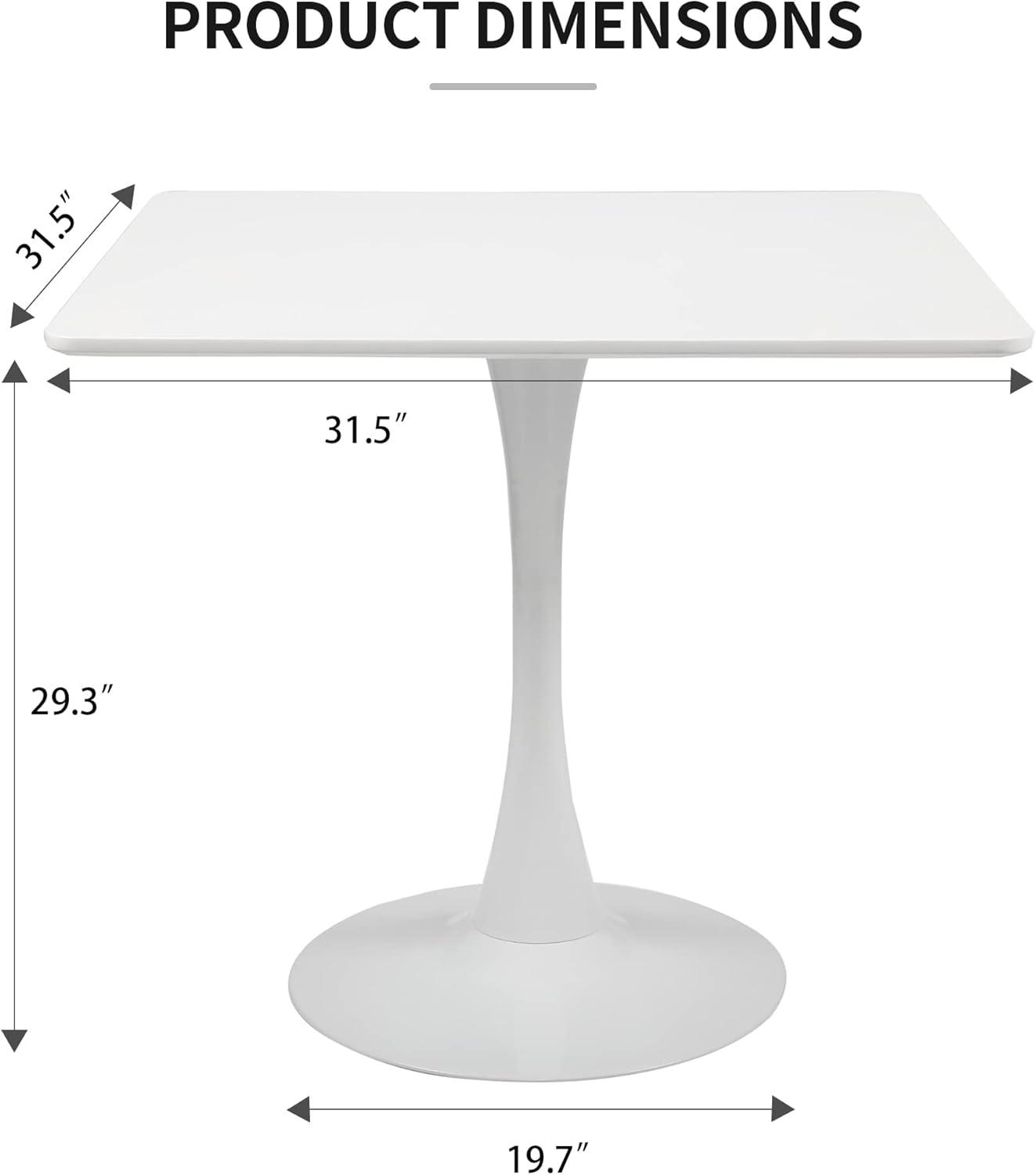 Crafted with a sleek mid-century modern aesthetic, this table effortlessly combines style and practicality. Its clean square top finished in pristine white lends a fresh, minimalist charm to any room-be it a cozy dining nook, a home office, or a living space corner. The single pedestal base not only maximizes legroom but also stands out with its smooth, rounded contours and felt padding underneath to protect floors from scratches and prevent unwanted movement. This petite yet spacious design comfortably accommodates 2 to 4 people, making it an ideal choice for smaller spaces where versatility and elegance are key.