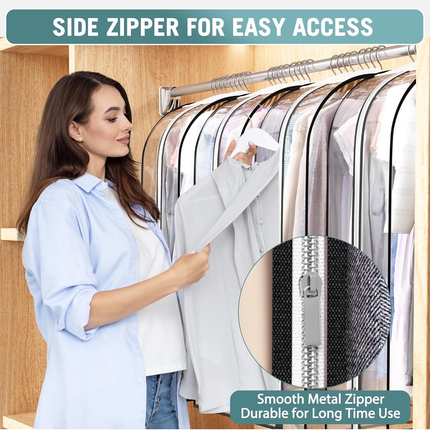 | Side zipper design allows easy access to individual garments without unzipping everything | Not ideal for long-term storage of delicate fabrics susceptible to plastic contact |